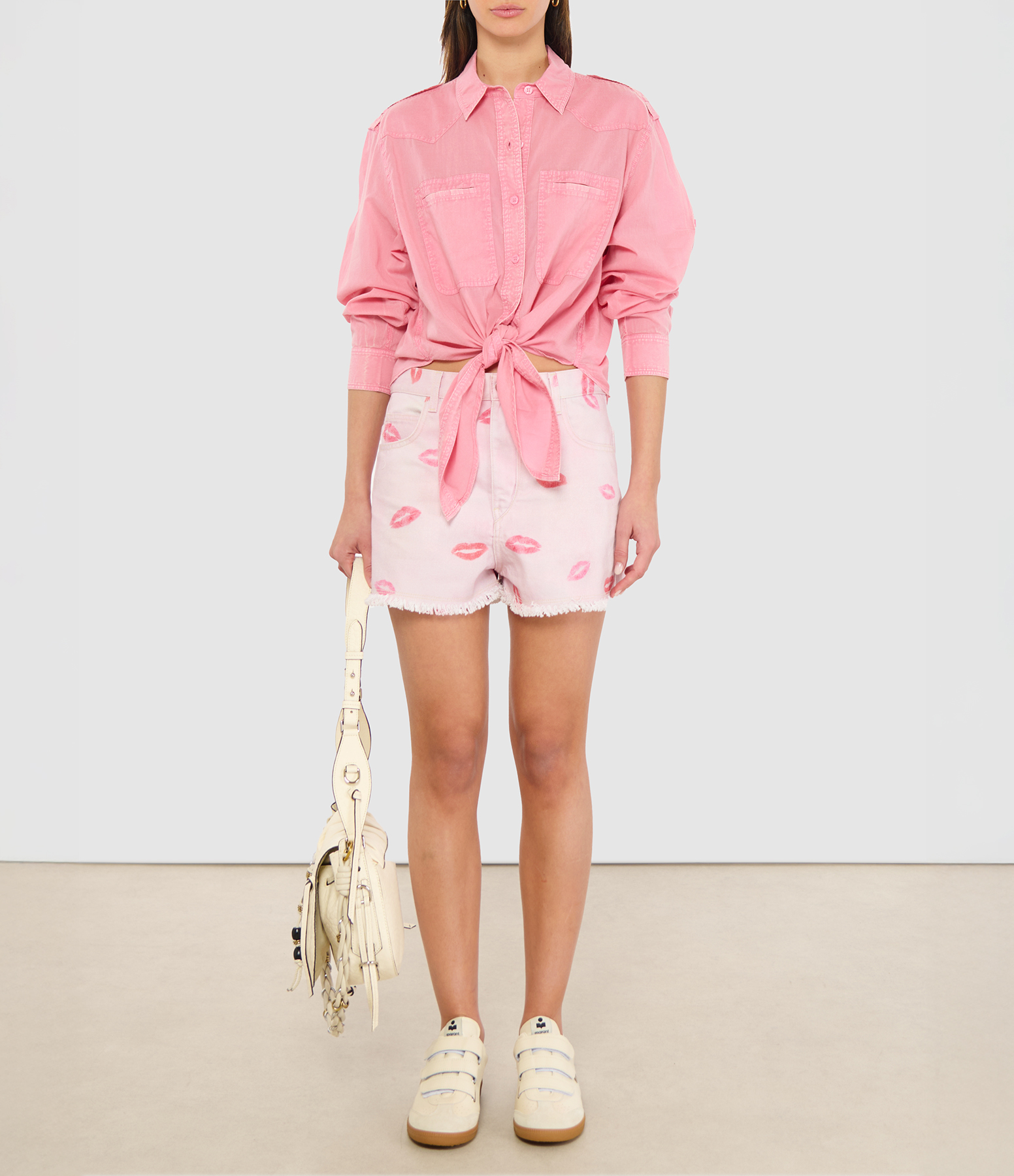 Pochette à carreaux et rayures multicolores. Poche avant imprimée "Marant". Fermeture par zip à cordon.