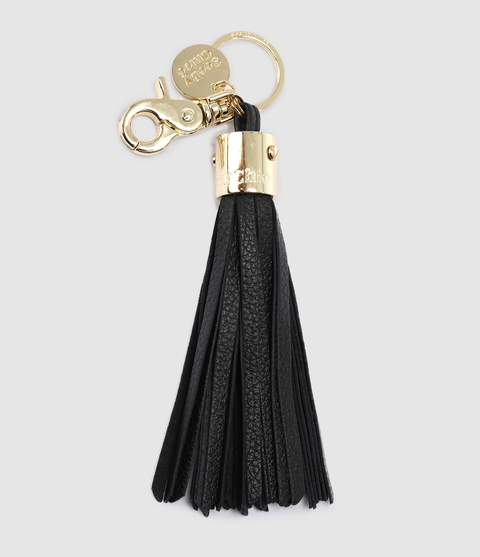 Porte-clés avec pompon en cuir. Accroche par mousqueton avec médaille gravée "See by Chloé".