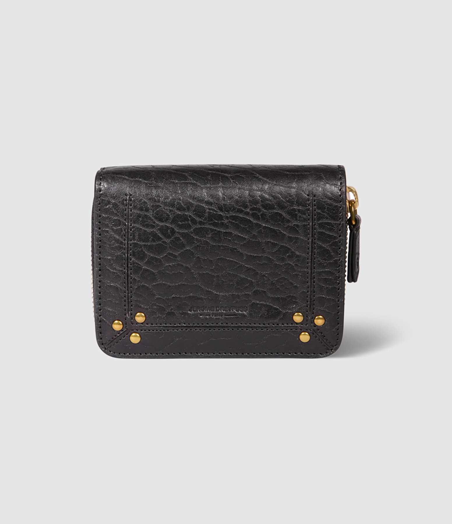 Portefeuilleen cuir bubble noir. Fermeture zippée. Compartiments monnaie avec une fermeture zippée adossé d'un rangement pour les cartes fermé à l'aide d'une pression.