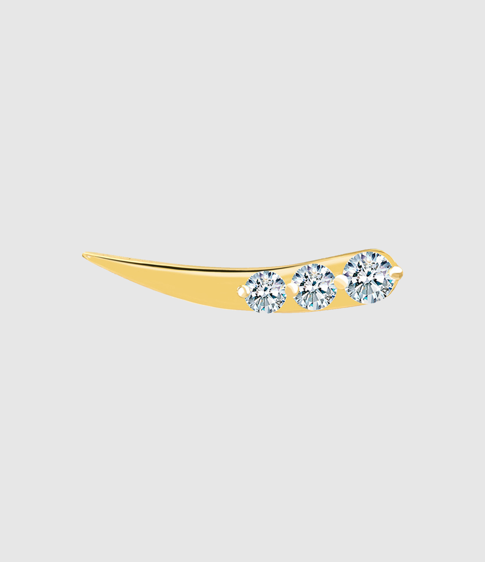 Puce d'oreille en or jaune. Trois diamants naturels sur l'avant. Fermoir.