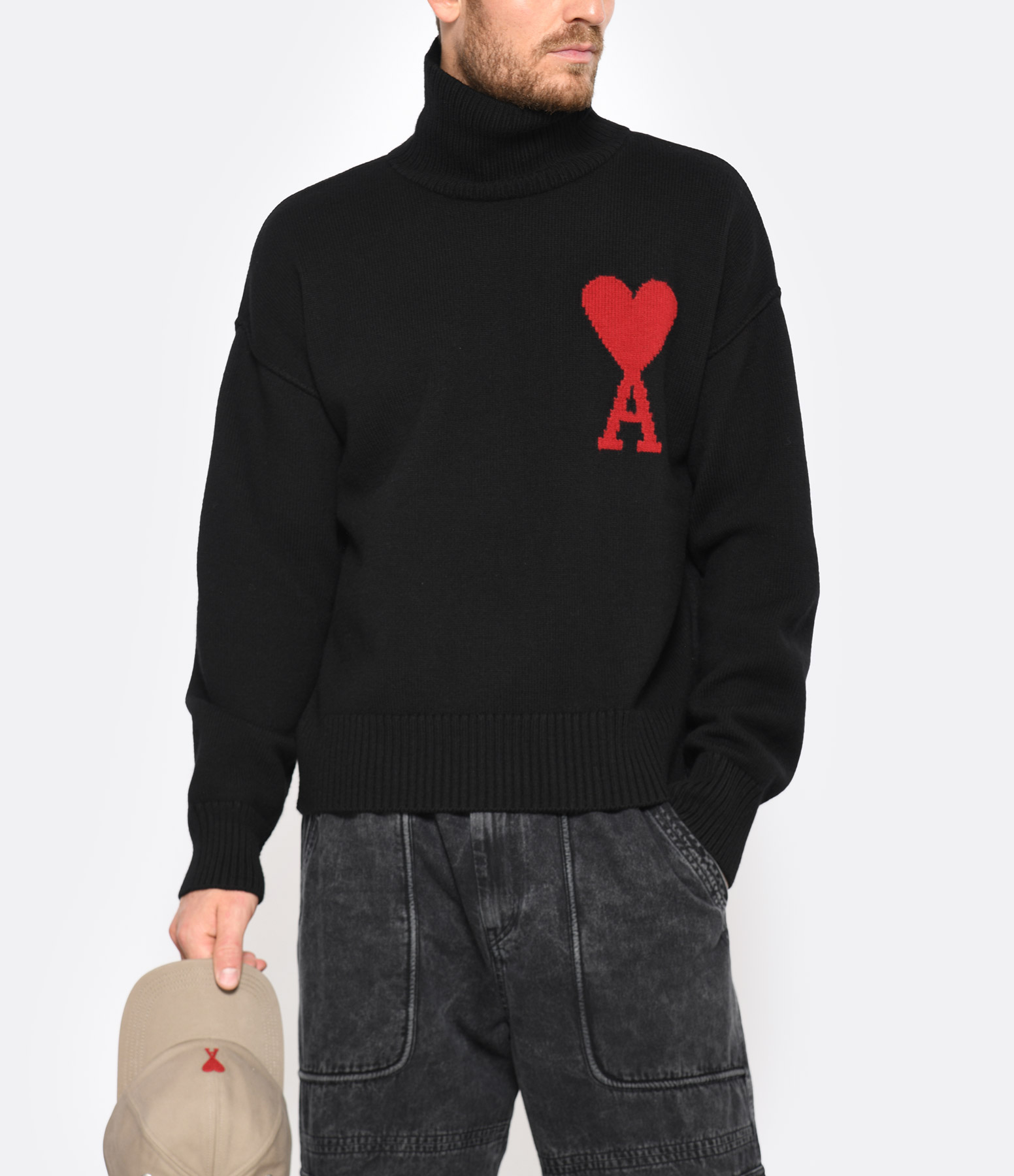 AMI PARISPull Unisexe Col Roulé Ami de Cœur Noir Rouge