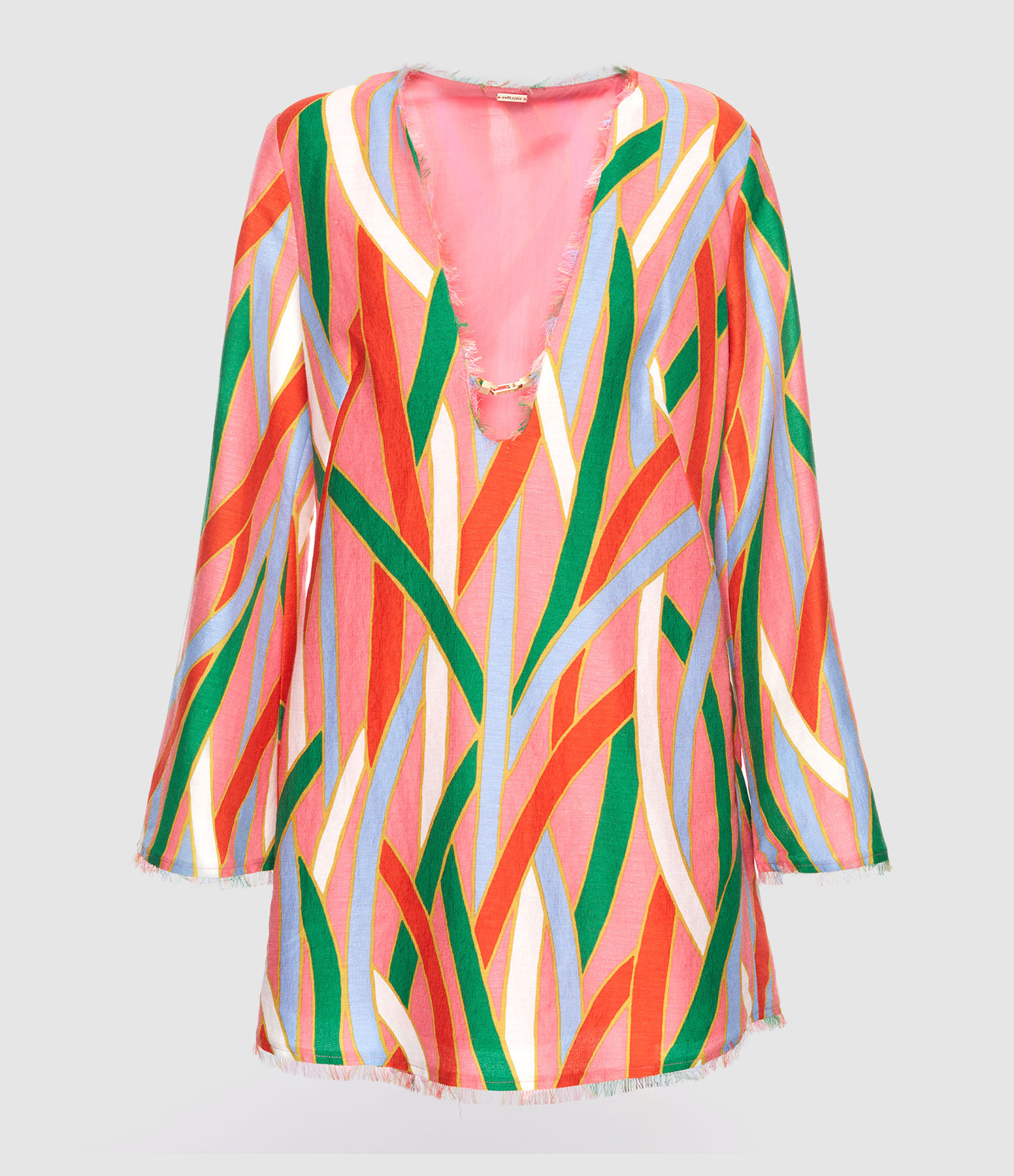 Mini-robe en lin multicolore. Décolleté en V rehaussé de détails Cult Gaia. Manches longues. Doublé. Coupe près du corps.