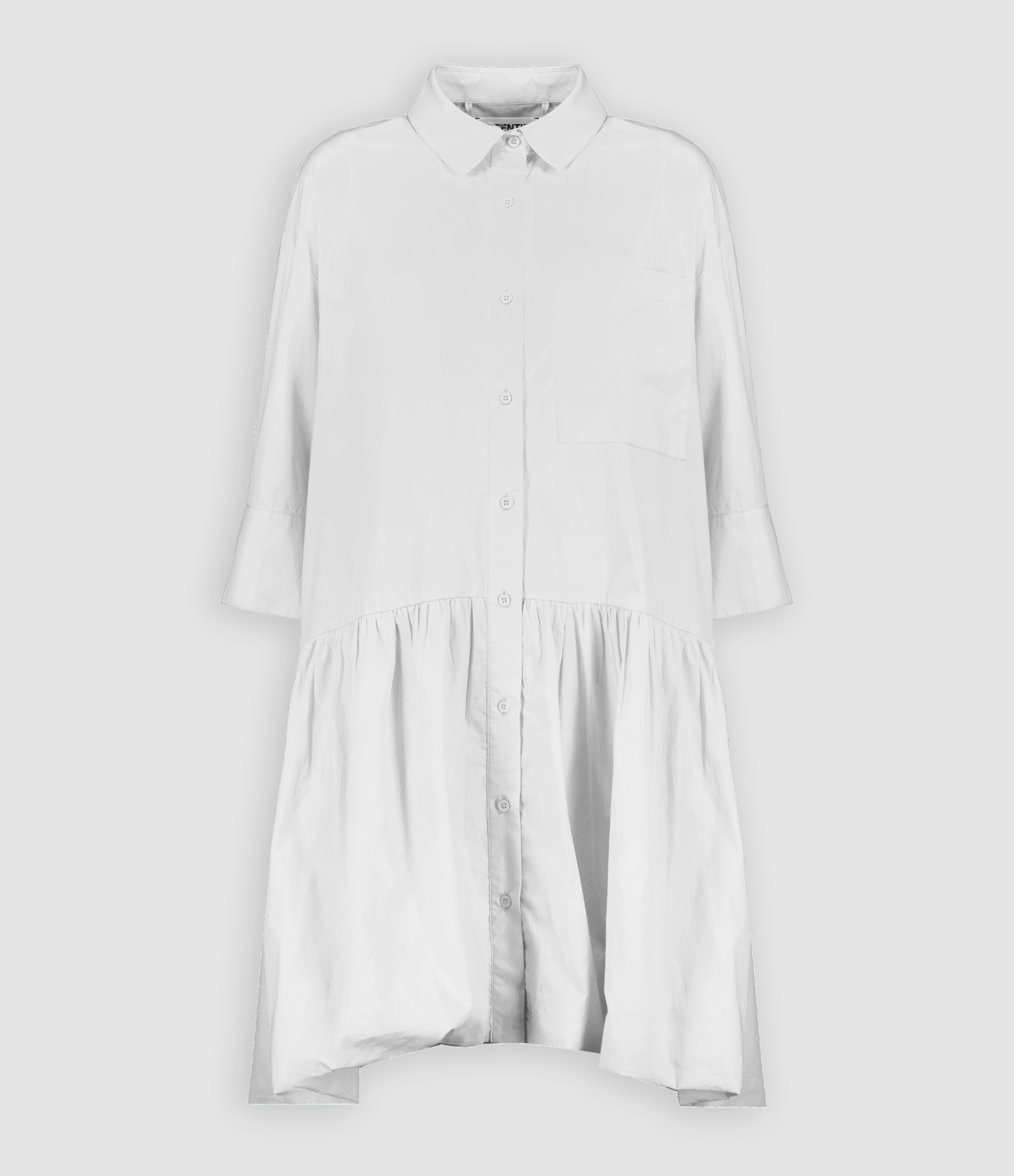 Robe chemise en coton blanc. Coupe oversize. Poche plaquée sur la poitrine. Manches courtes.
