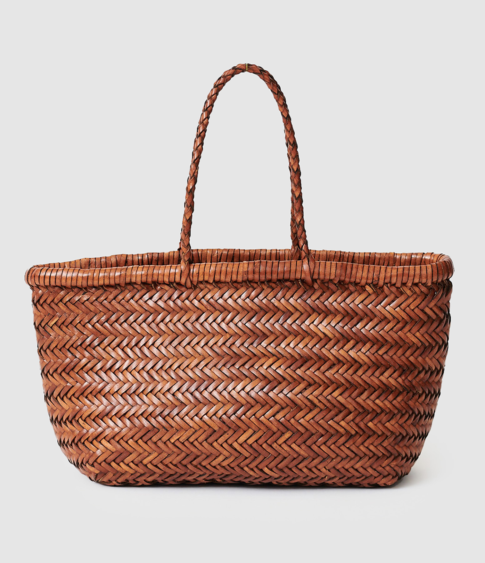 Sac en cuir tressé marron. Deux anses. Non doublé.