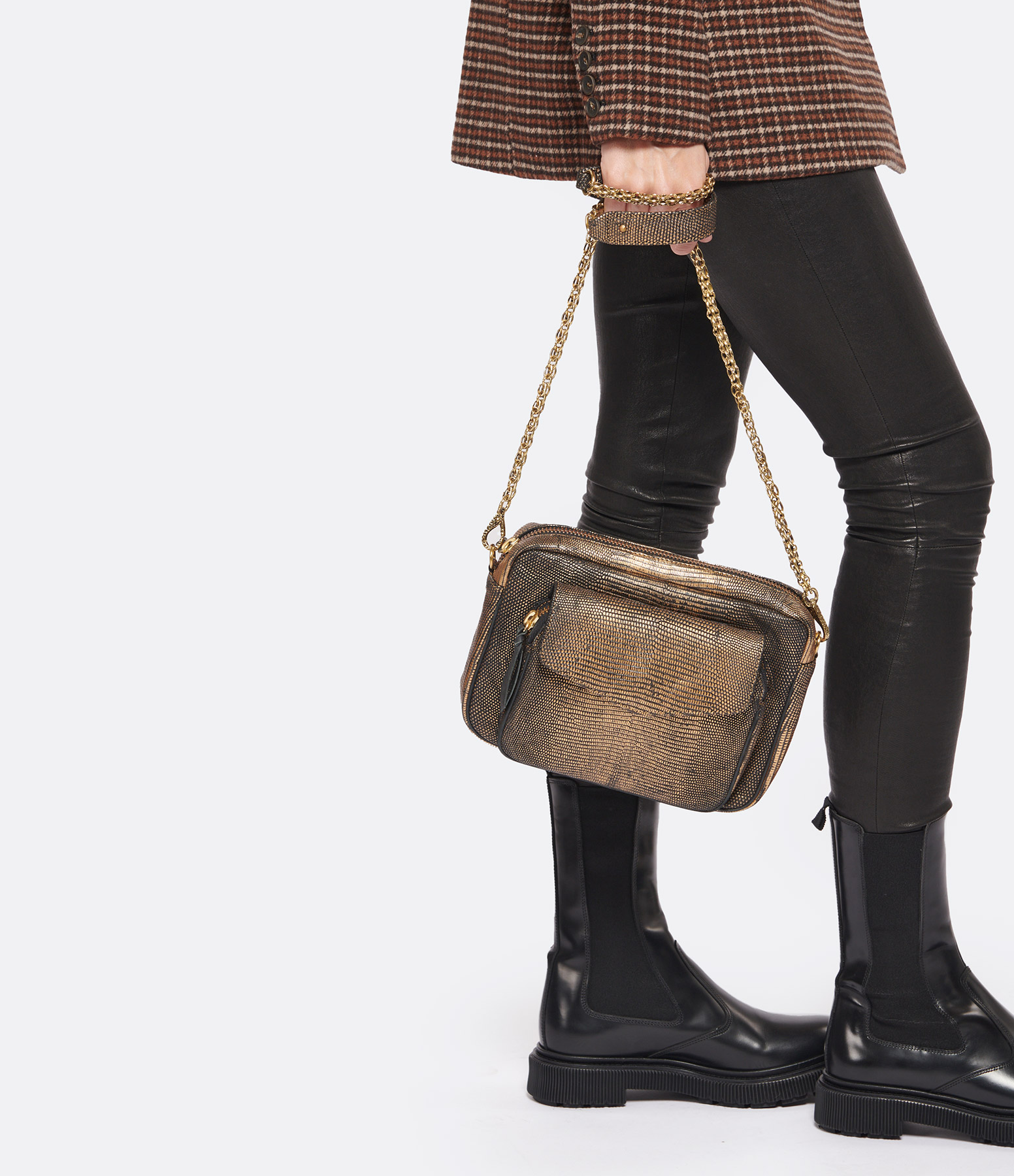 CLARIS VIROTSac Big Charly Lézard Doré Vieilli