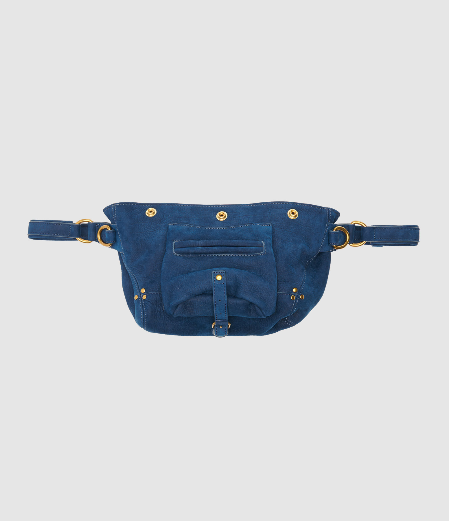 Sac banane en cuir croco bleu marine, avec poche à l'avant. Ceinture réglable. Fermeture zippée. Intérieur doublé en coton avec une petite poche plaquée.