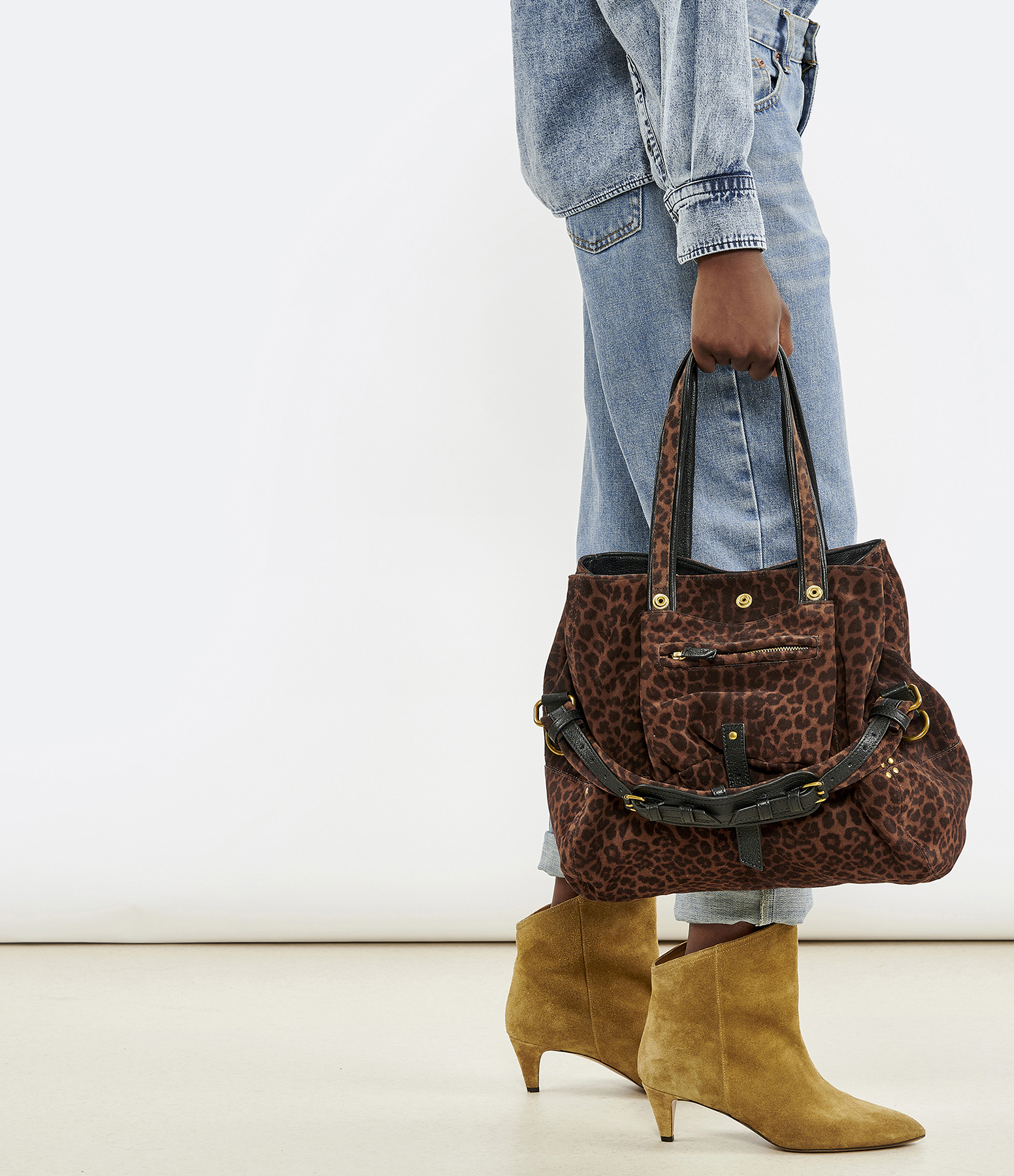 Sac Billy M Cuir Suédé Imprimé Léopard Naturel