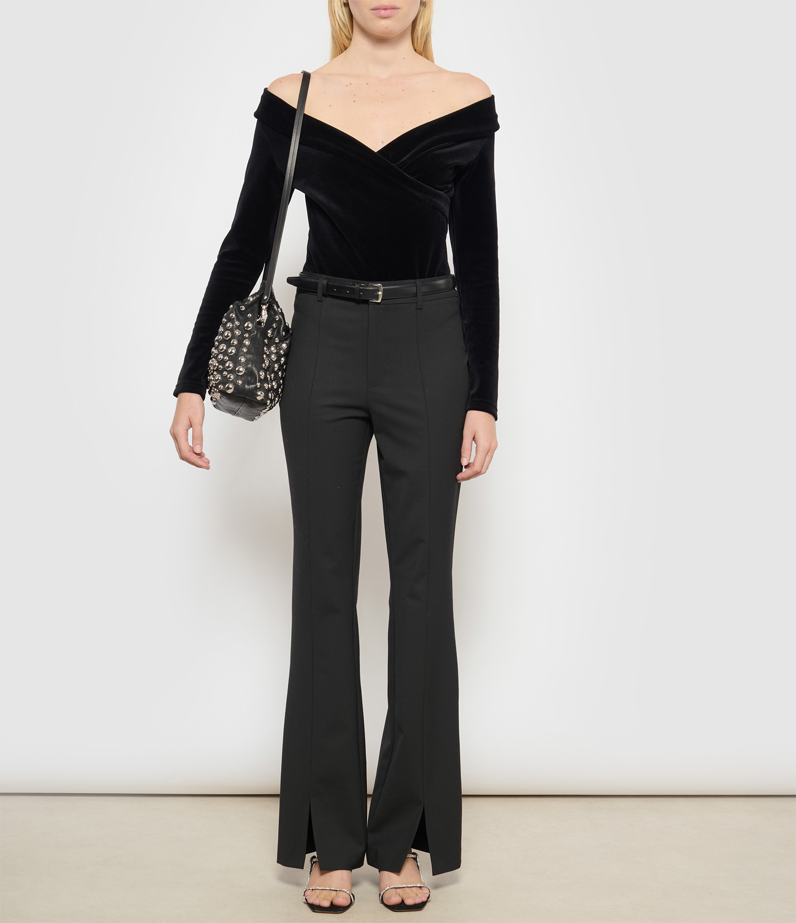 Sac à main en cuir noir avec poignées tressées et bandoulière amovible en cuir. Intérieur en toile de coton. Studs.
