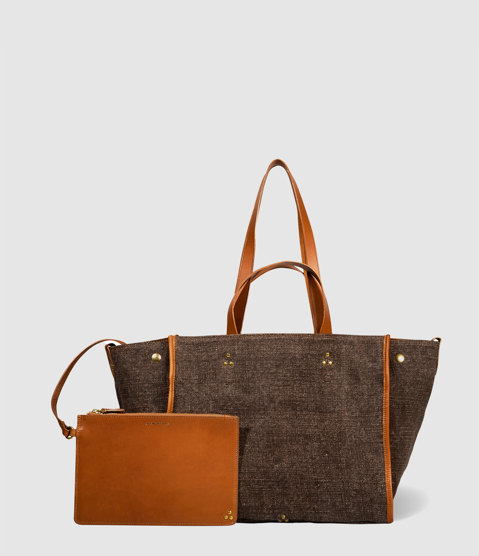Sac carré taille M, en lin de couleur marron. Il est doté de doubles anses pratiques, permettant un porté main ou épaule selon vos envies. Léger et fonctionnel, il est accompagné d’une petite pochette en cuir.