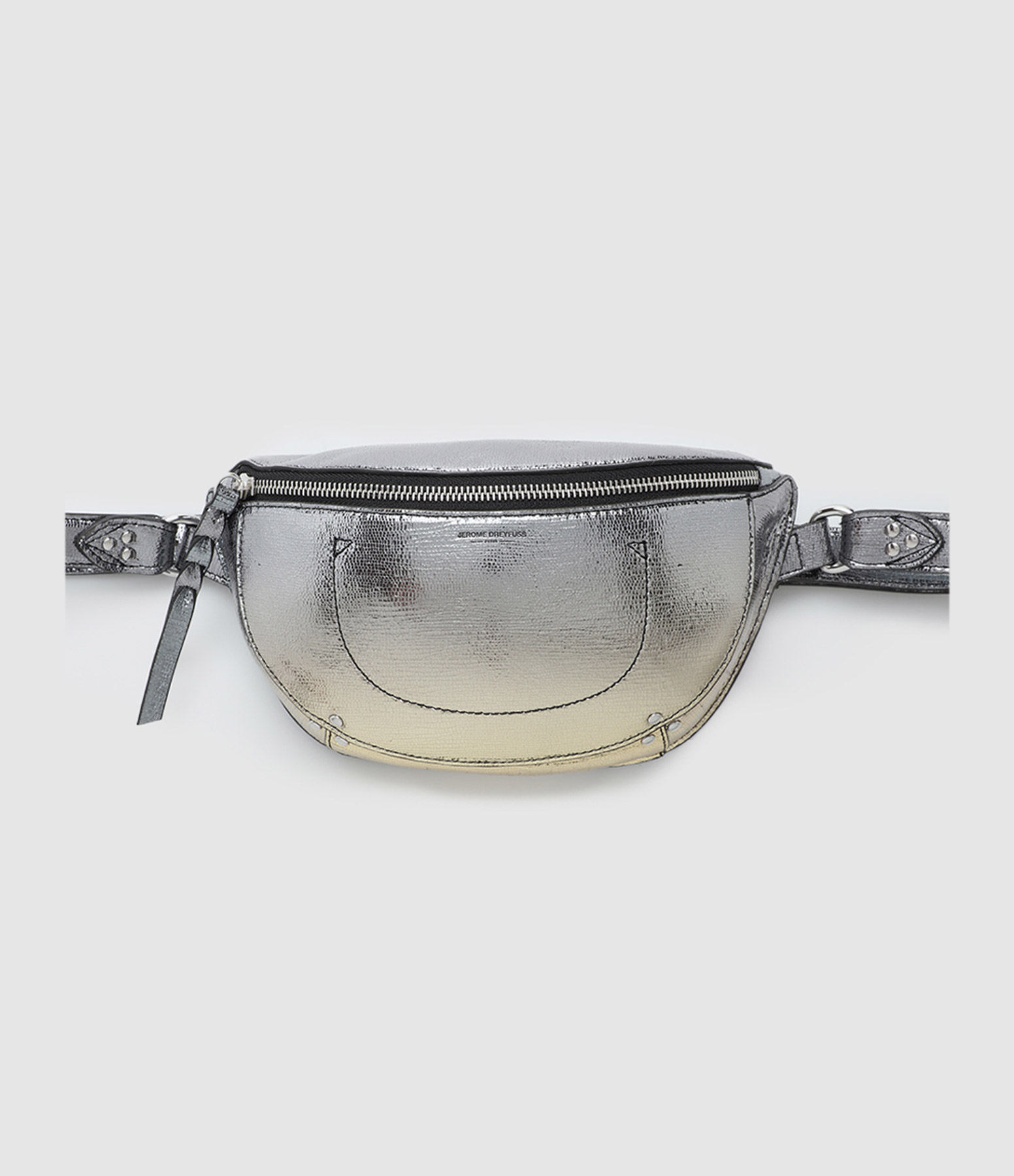 Sac banane en cuir lamé dégradé or, avec poche zippée au dos. Ceinture réglable. Fermeture zippée. Intérieur doublé en coton avec une petite poche plaquée.