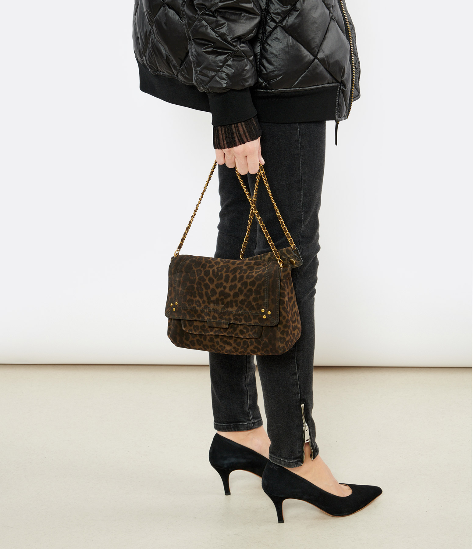 JEROME DREYFUSSSac Lulu L Cuir Suédé Imprimé Léopard Kaki
