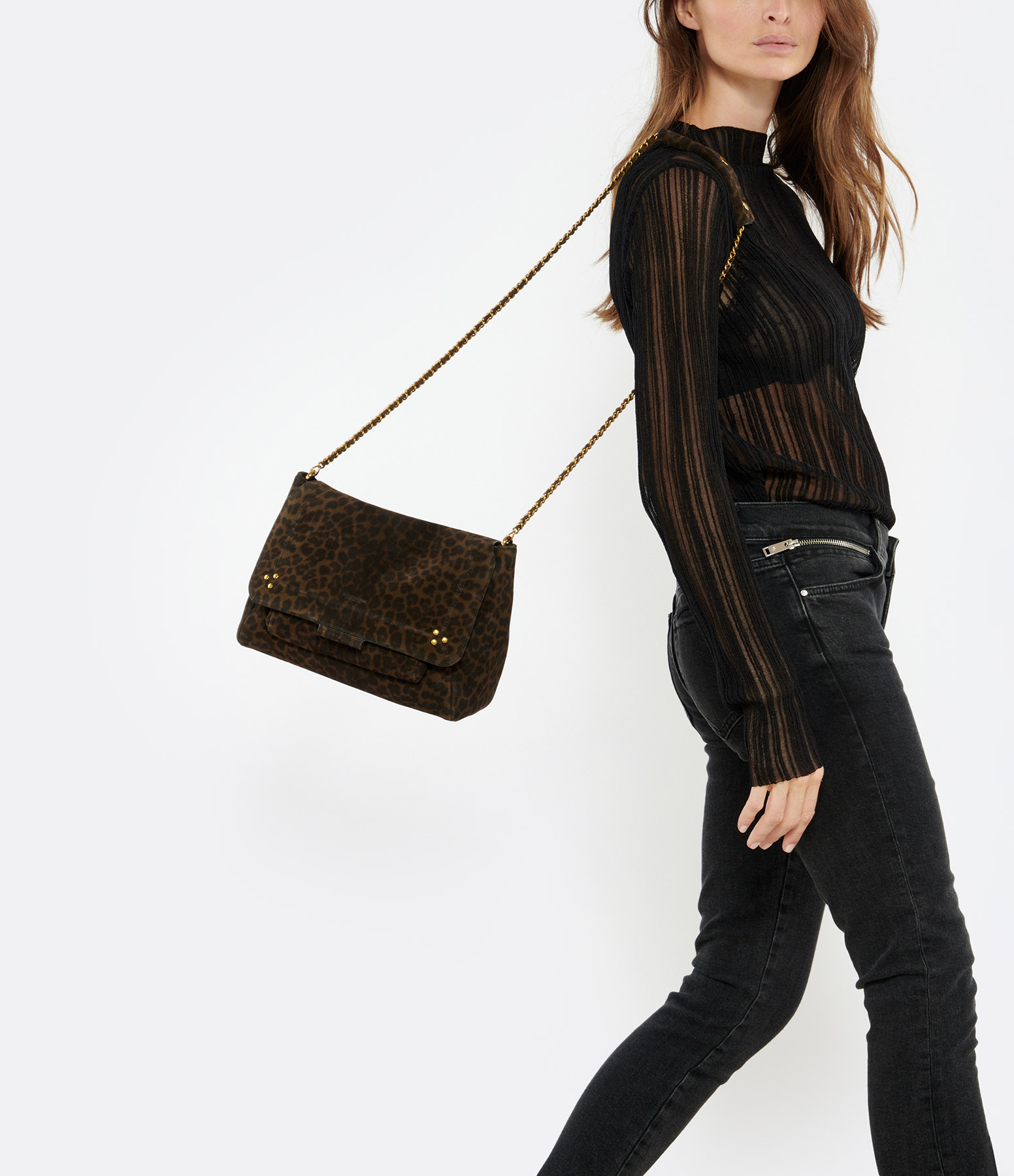 JEROME DREYFUSSSac Lulu M Cuir Suédé Imprimé Léopard Kaki