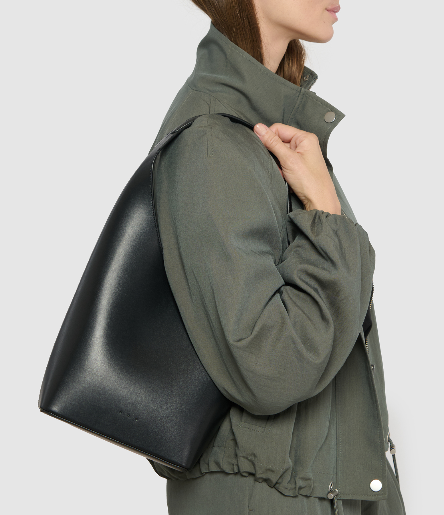 Ce sac est confectionné en cuir de veau lisse d'origine italienne. Sa matière, à la structure rigide, conserve sa forme et souligne les lignes sculpturales du sac. Un fond renforcé assure une durabilité et une tenue optimales.