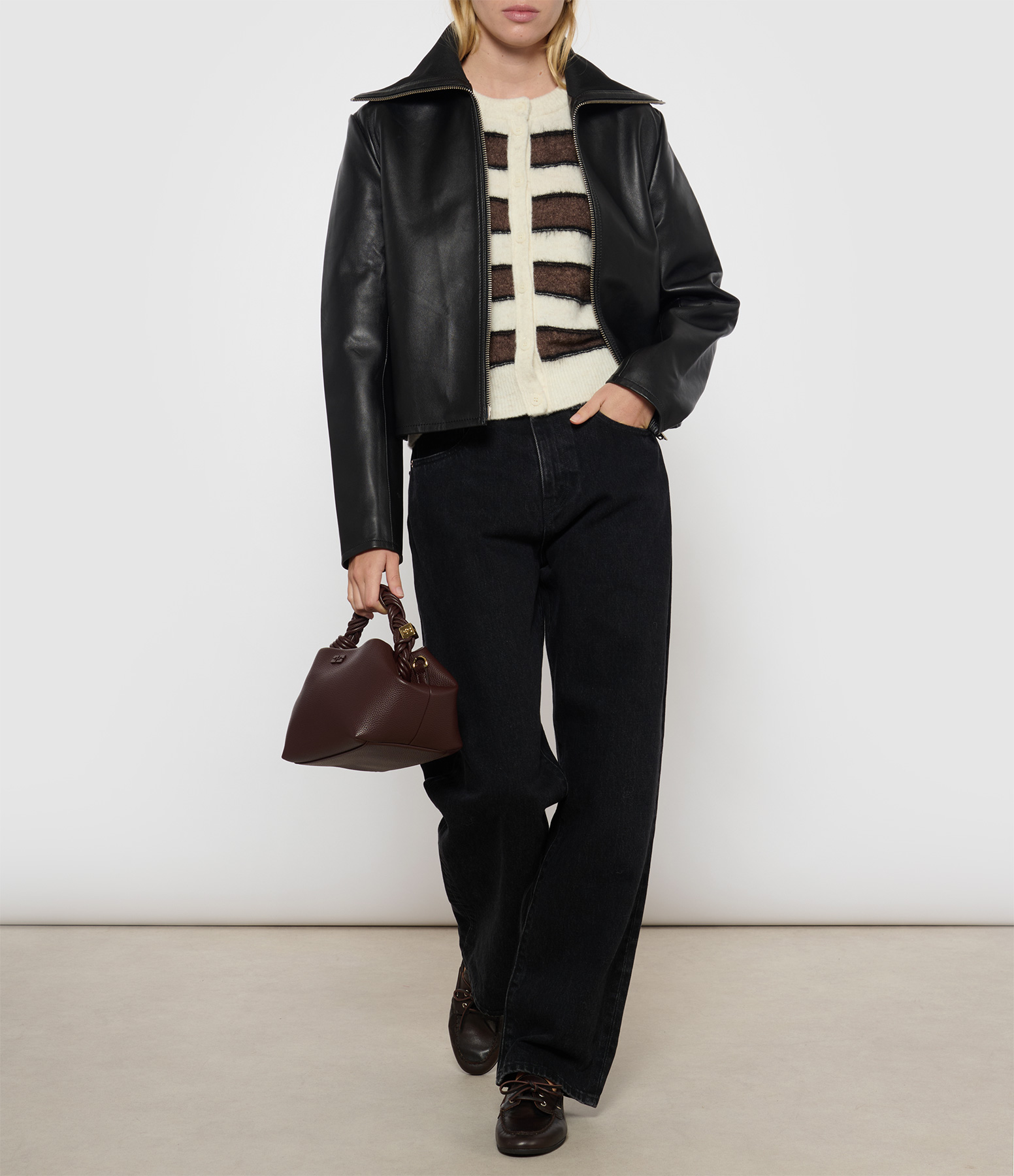 Composition : 65% cuir recyclé certifié, 19% polyuréthanne, 16% polyester.