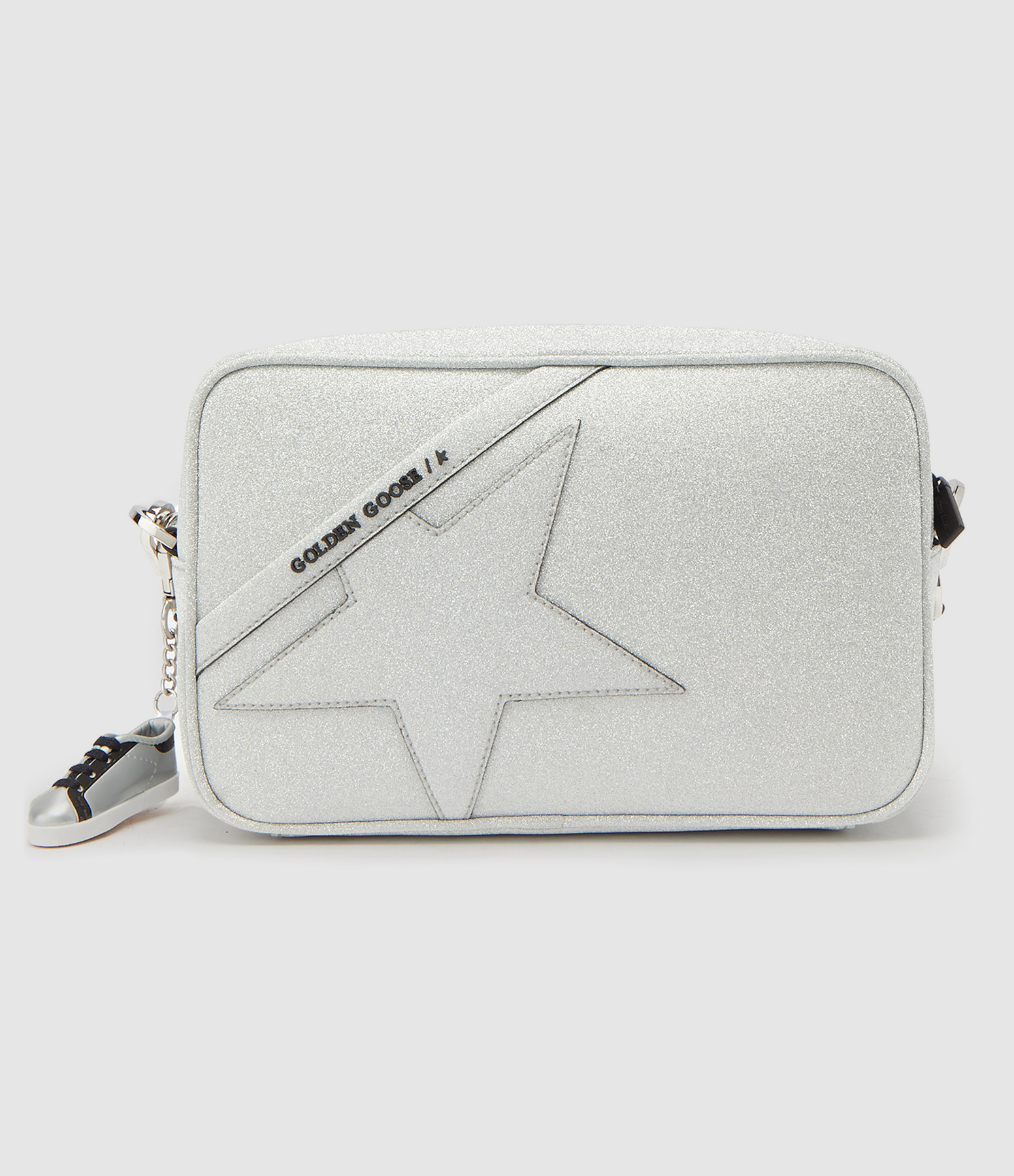 GOLDEN GOOSESac Star Cuir Glitter Argenté