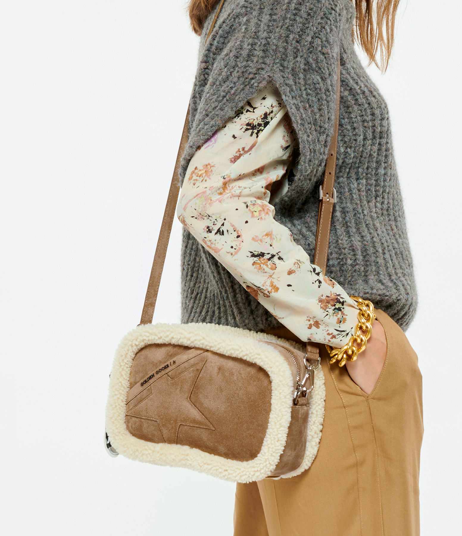 GOLDEN GOOSESac Star Cuir Suédé Fourrure Marron