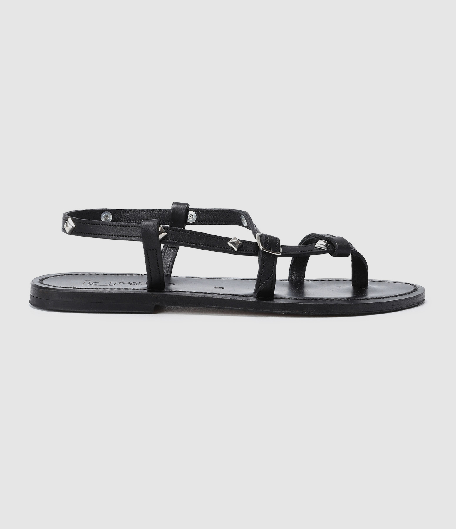 Sandales en cuir ornées de clous. Bride réglable sur le pied.