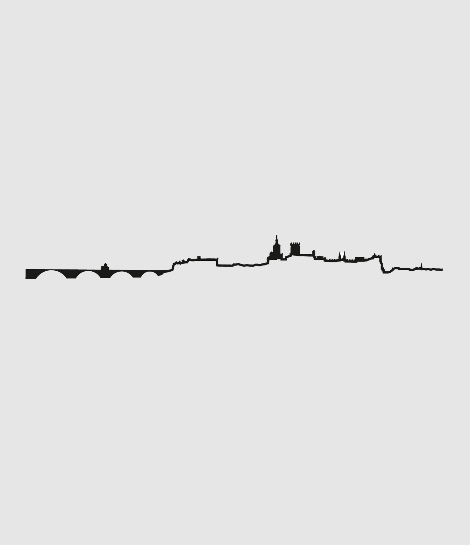 Sculpture murale en tôle d'acier massif. Représentation de la ville de d'Avignon, avec le fameux pont d'Avignon, la cathédrale Notre-Dame des Doms, le palais des papes et la ville.