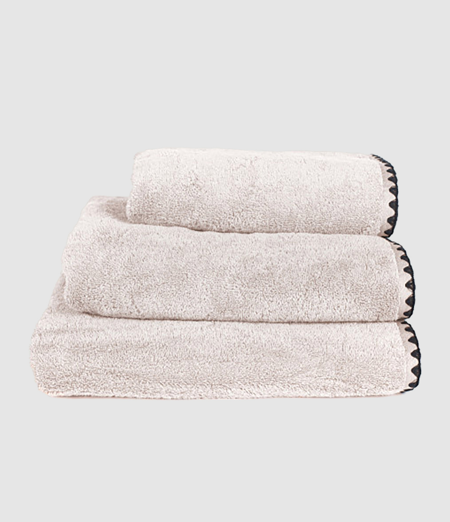 Serviette de toilette en coton ivoire 550 g/m2 avec finition crochet noir.