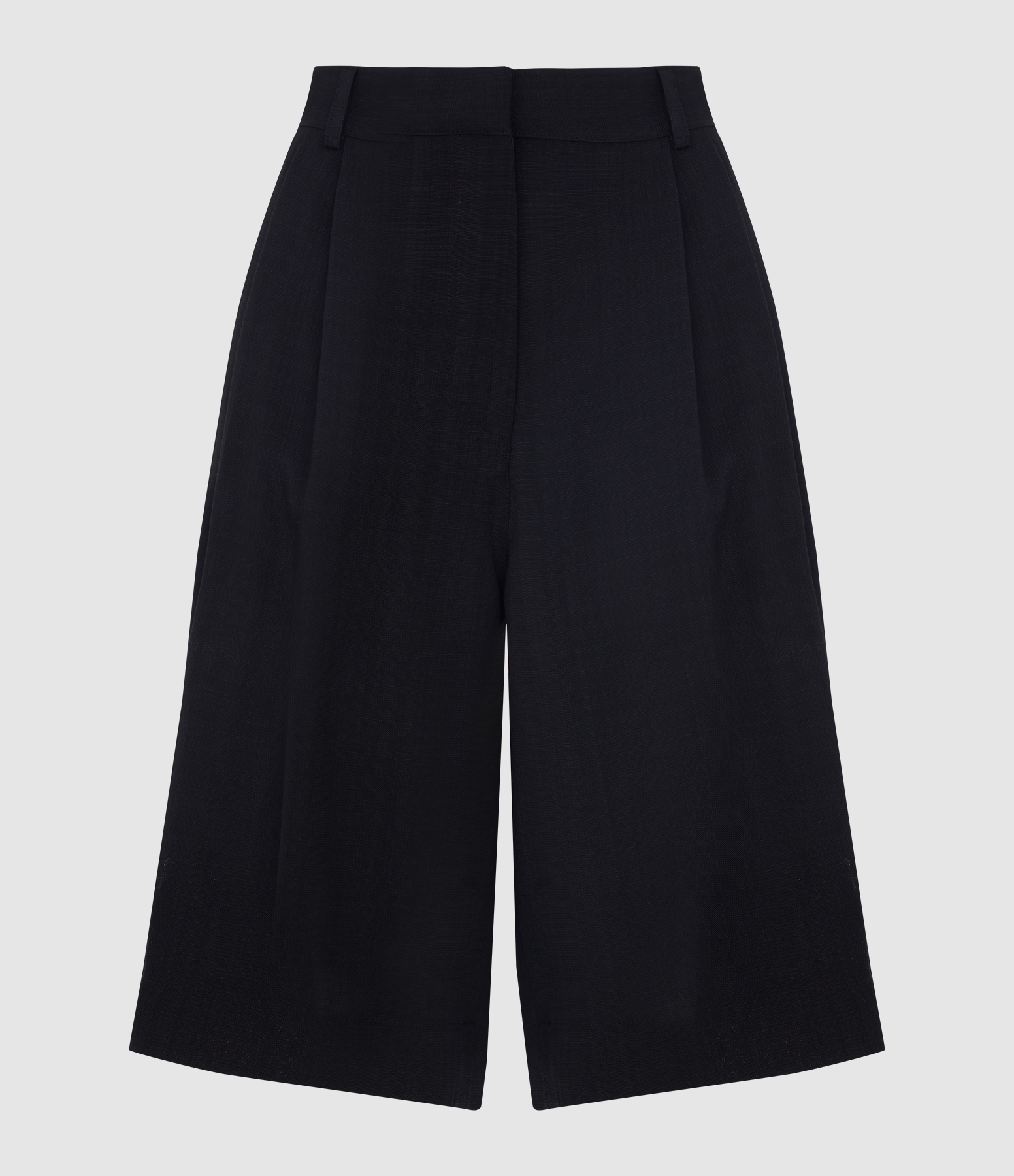 Ce short longueur genou séduit par sa coupe droite et ample. Sa taille haute, dotée de passants, est complétée par une fermeture zippée avec bouton masqué. Il présente des plis sur le devant, des poches latérales et des fausses poches passepoilées au dos.