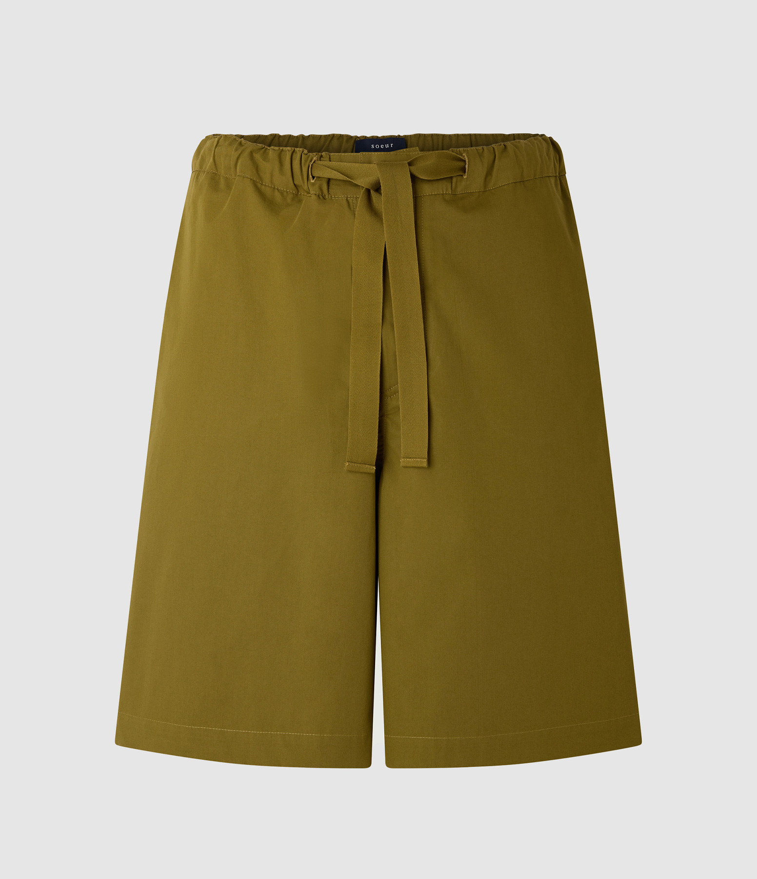 Short à coupe ample avec jambes arrondies, doté d’une ouverture avec lien et patte de boutonnage. Il possède deux poches sur les côtés et est confectionné dans une toile de coton épaisse.