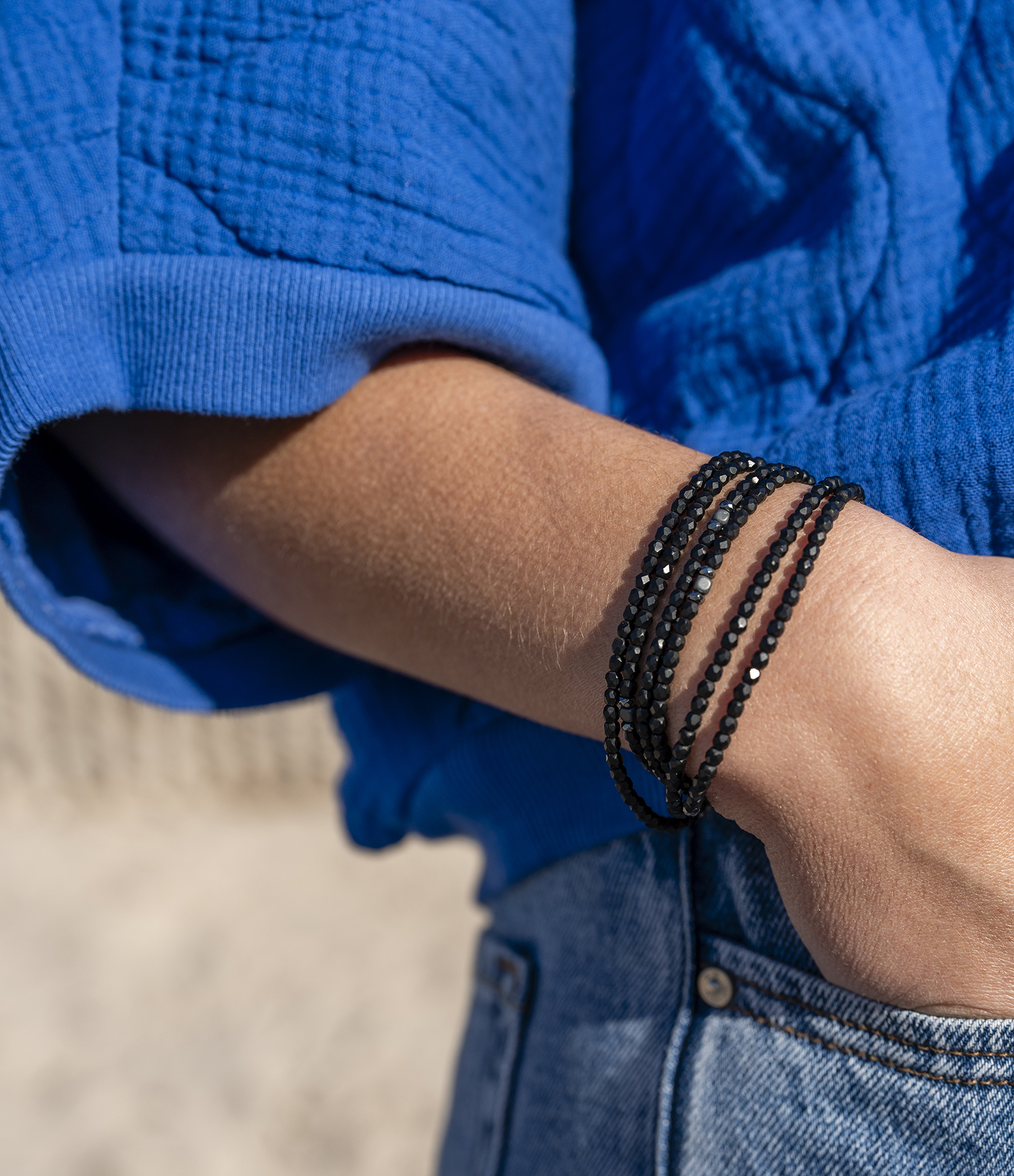 Collier et Bracelet 6 Tours Cookie Noir 103cm