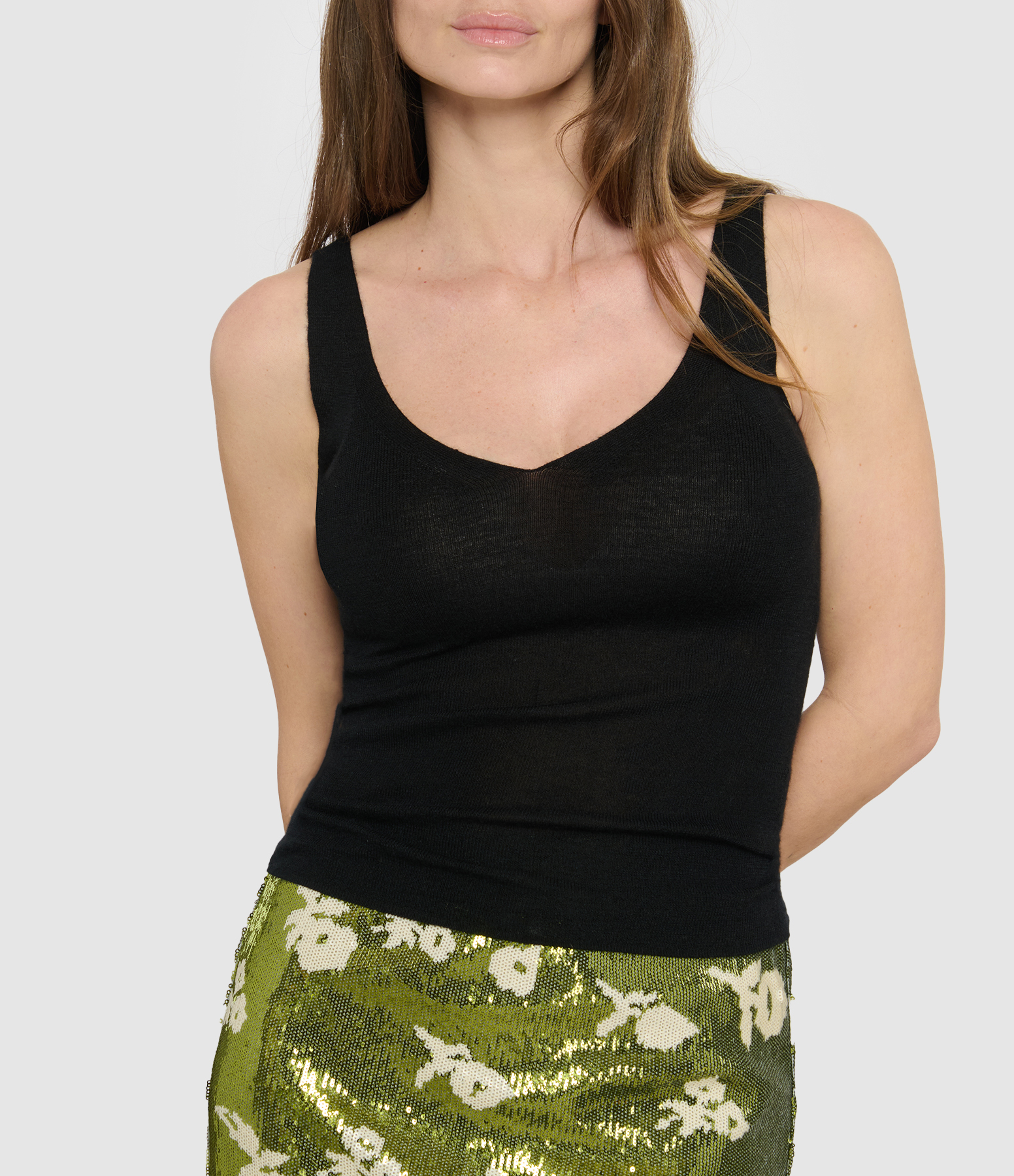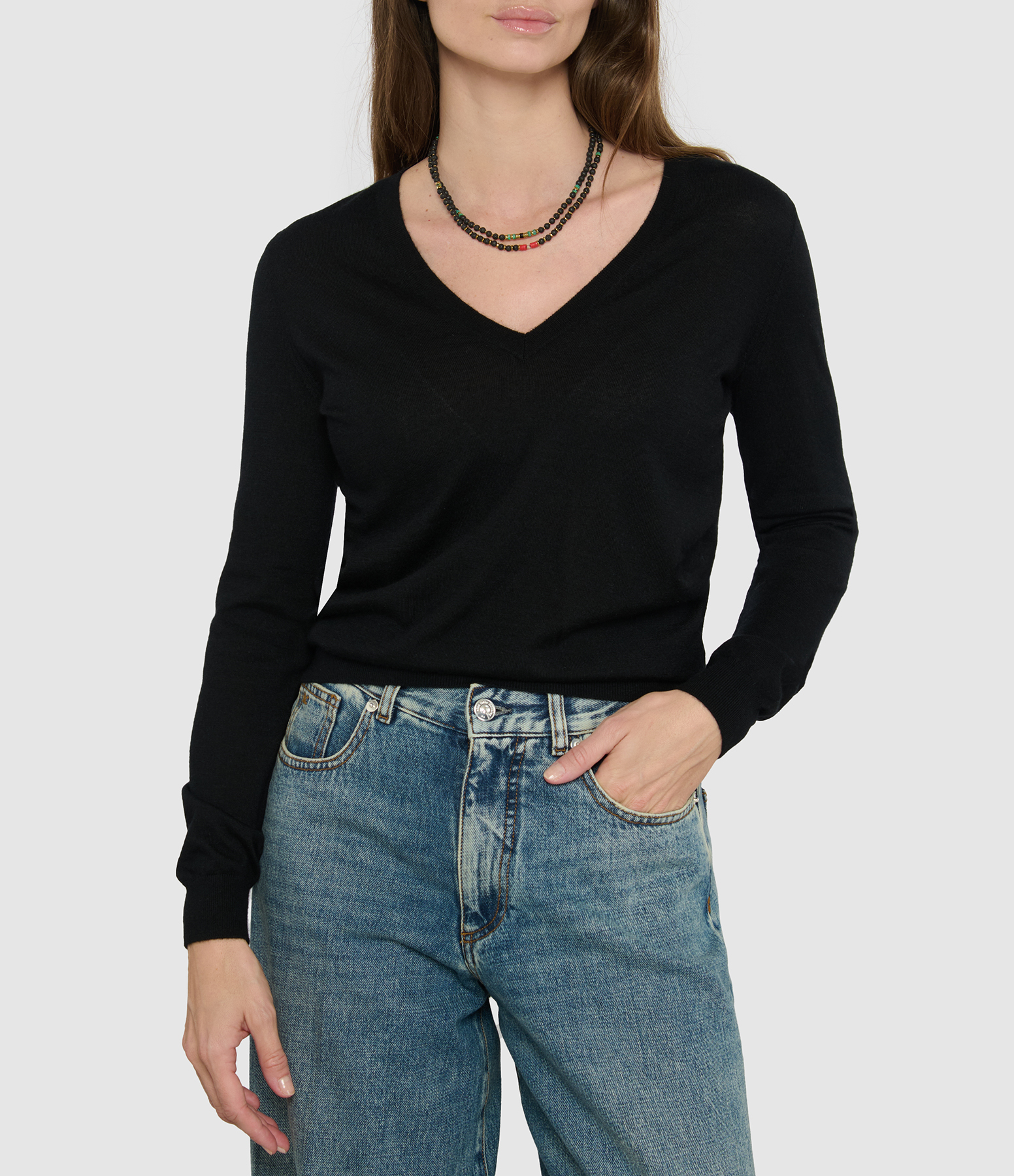 Pull Col V Oversized Ultrafin Minimaliste Noir