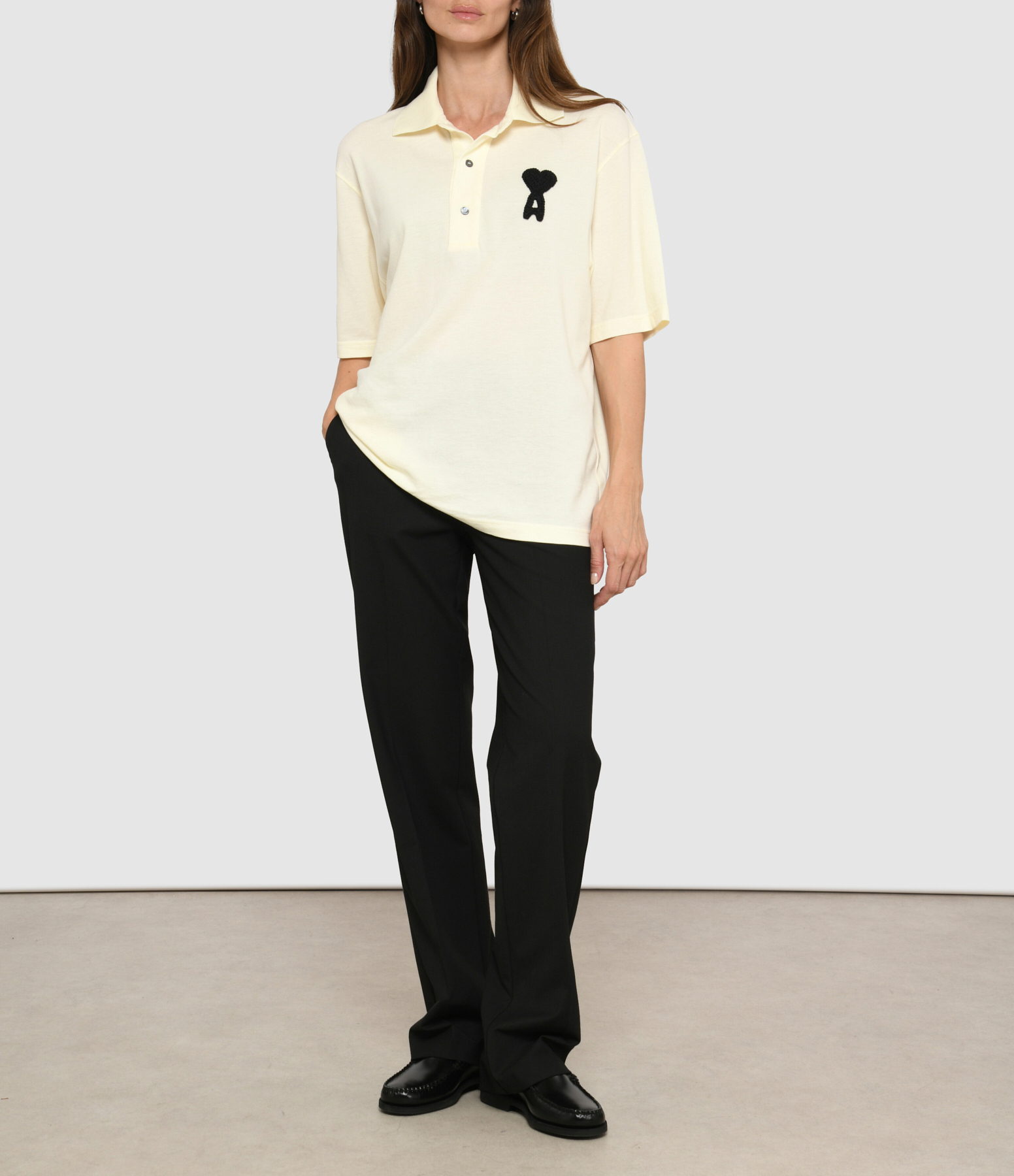 Polo Boxy Fit Ami De Coeur Knitted Patch Blanc Crème Noir