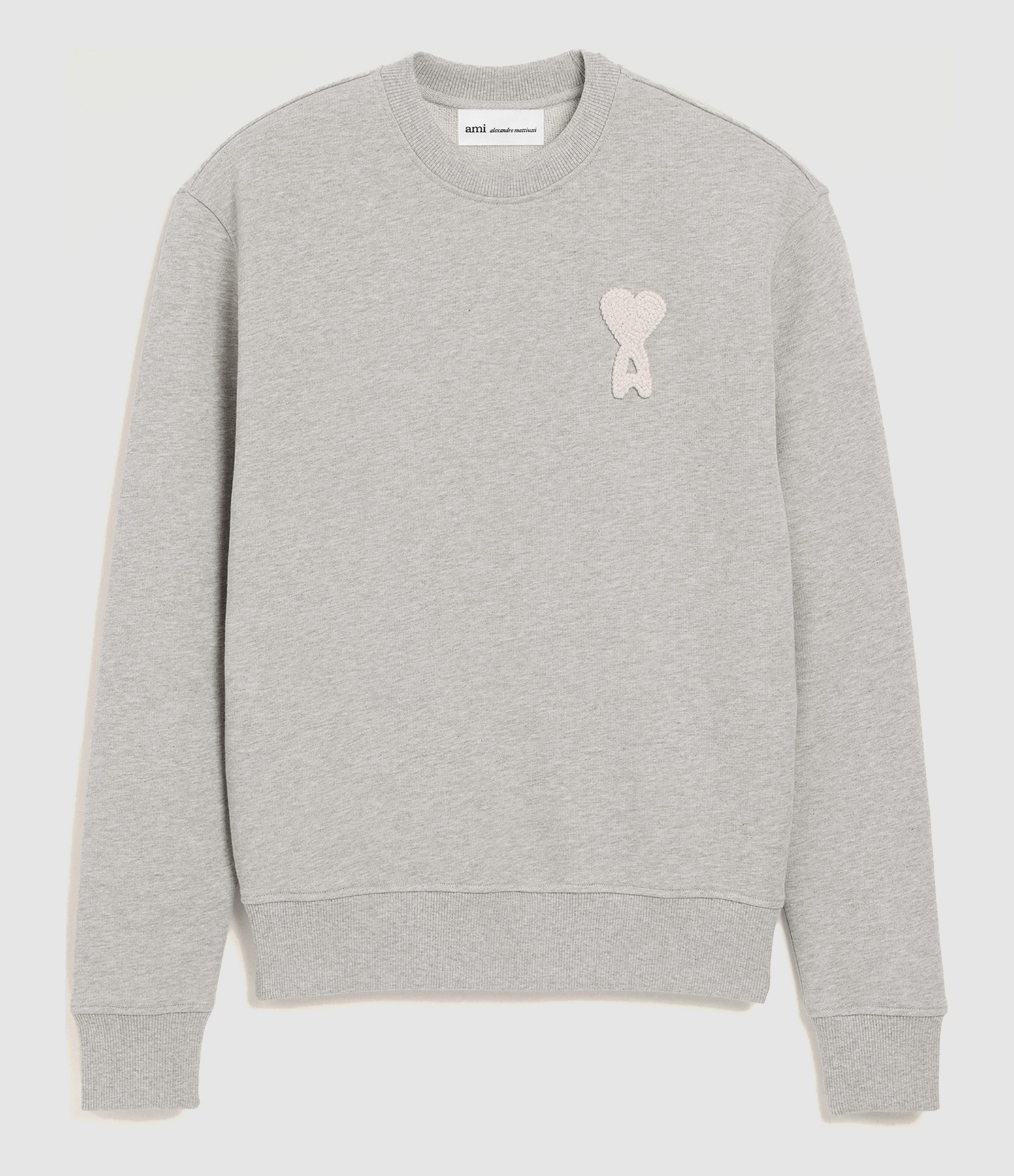 AMI PARISSweatshirt Ami De Cœur Knitted Patch Gris Chine Blanc