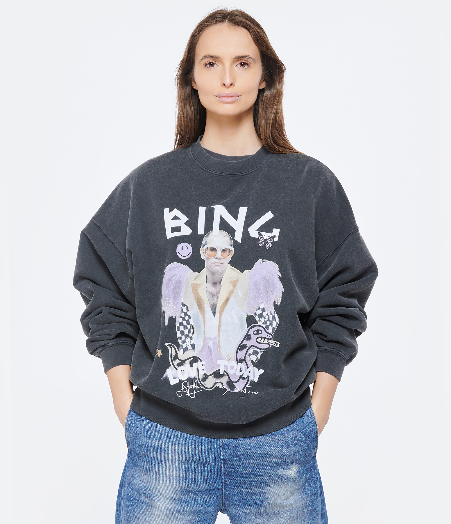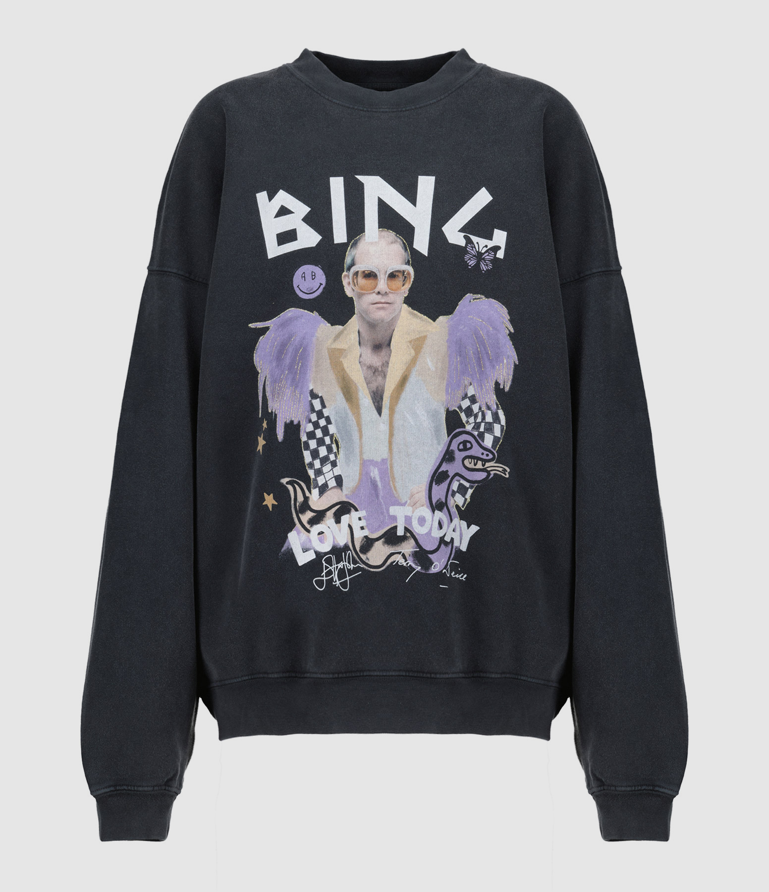 ANINE BINGSweatshirt Harvey Elton John Coton Noir Délavé, Collaboration Anine Bing x Terry O'Neill x IScreamColour