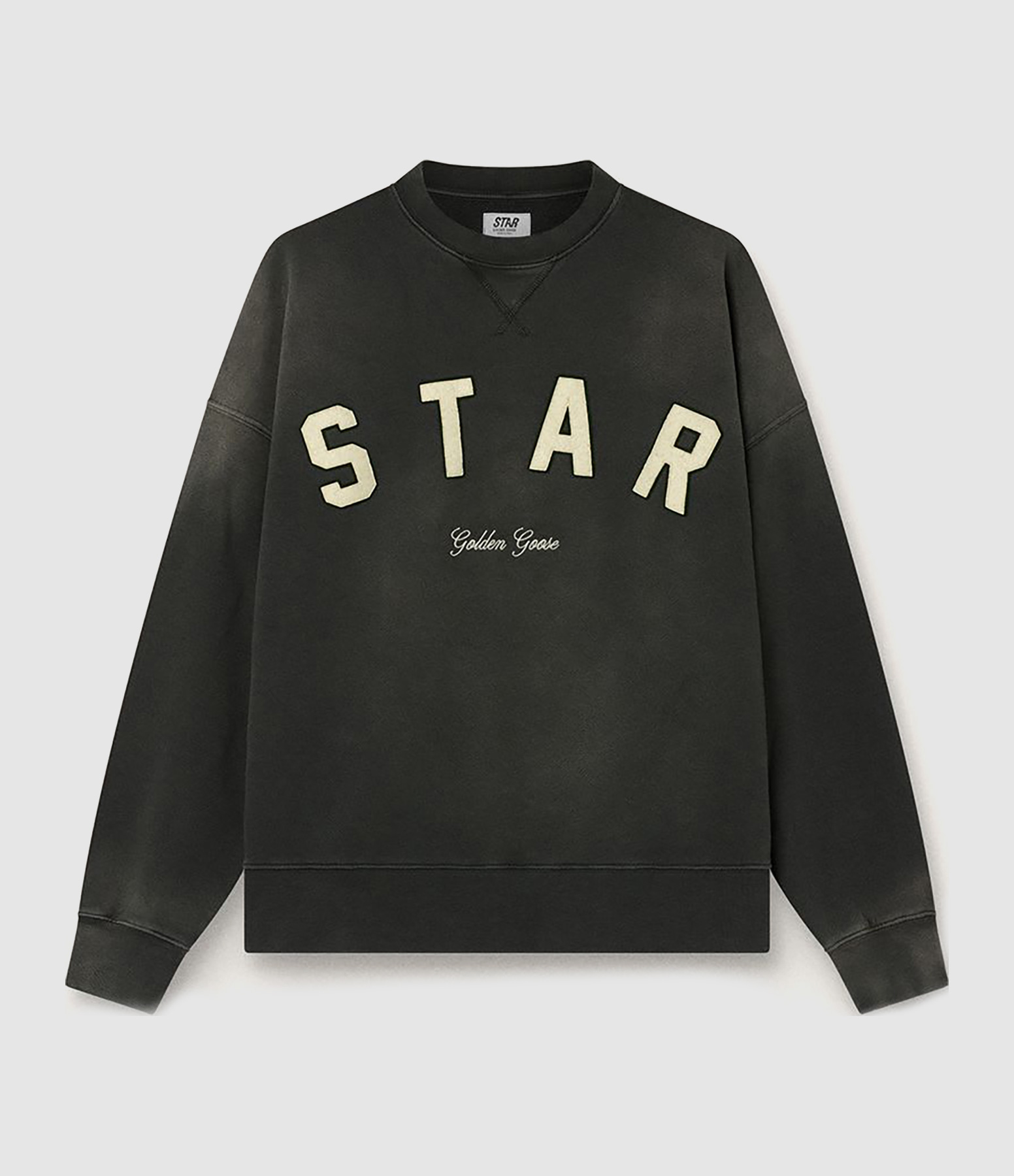 Ce sweat-shirt unisexe oversize présente un effet vieilli, l'inscription « STAR » brodé, ainsi que le logo Golden Goose.