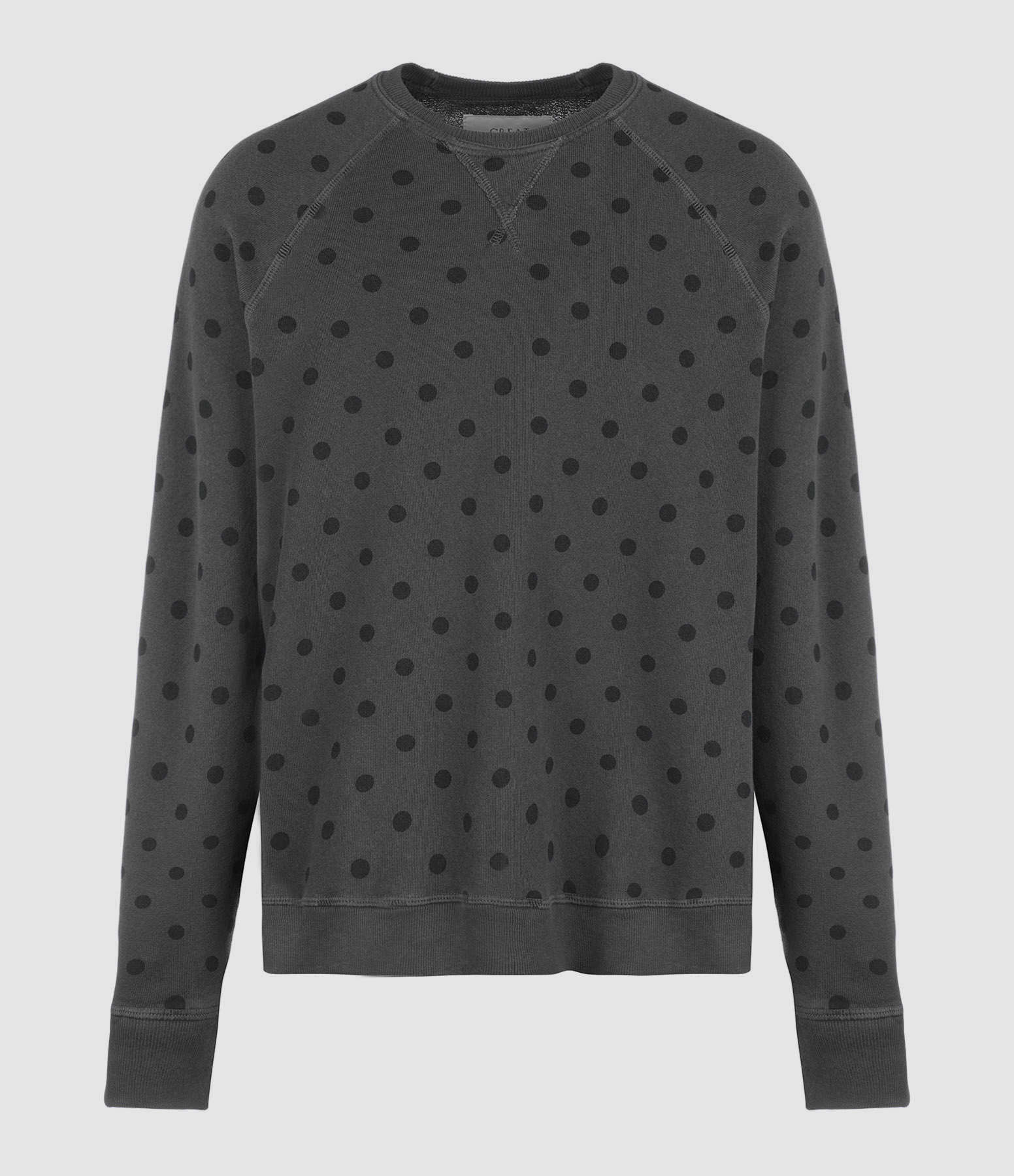 Sweatshirt en coton à pois noir délavé. Col rond. Manches longues. Coupe droite. Base droite.