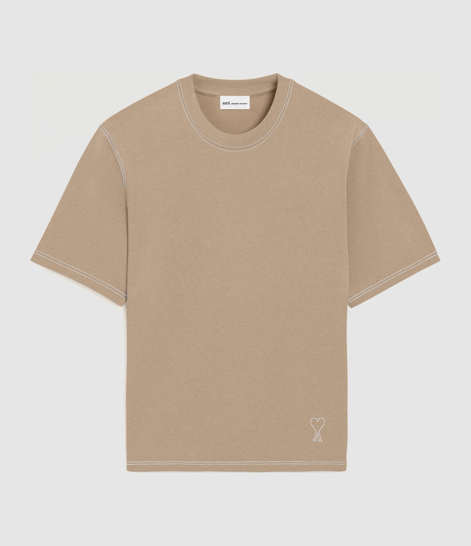 AMI PARIST-Shirt With Stitched Ami De Coeur Beige Taupe