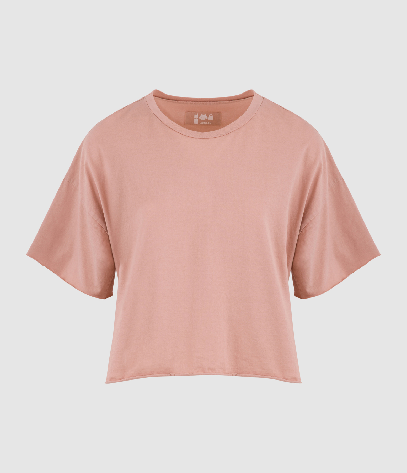 Tee-shirt en jersey de coton rose, manches courtes et col rond.