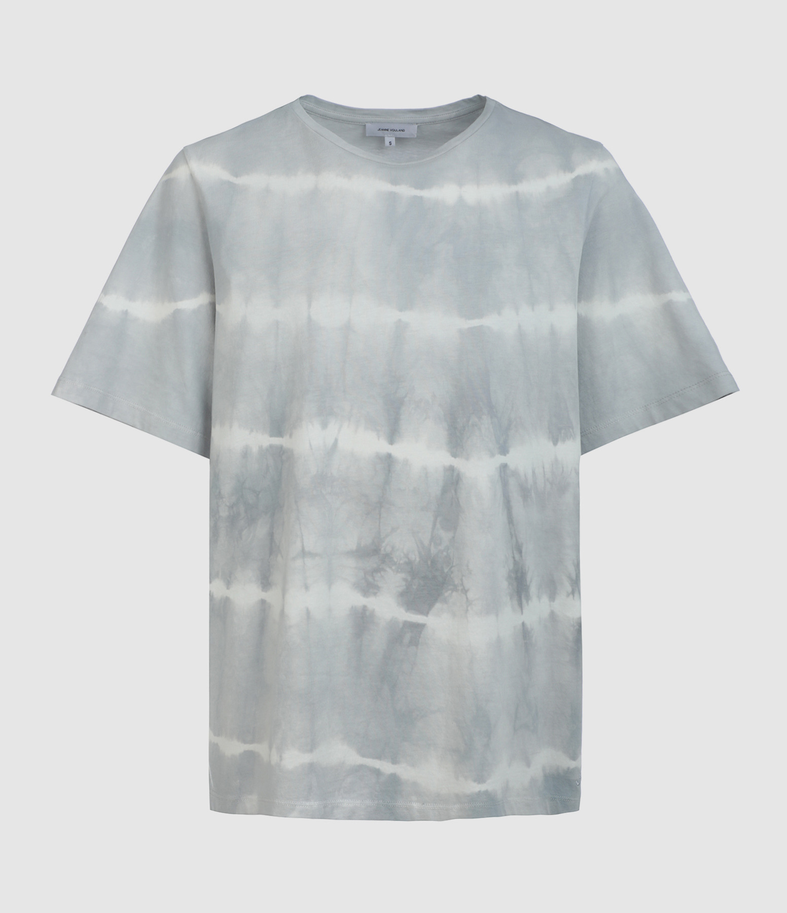 Tee-shirt en coton biologique tie and dye gris et blanc. Col rond. Manches courtes. En raison de l'application d'un traitement spécial, des variations d'effets peuvent apparaître. Les éventuelles différences au niveau de la teinture tie and dye résultent de l'authenticité du produit.