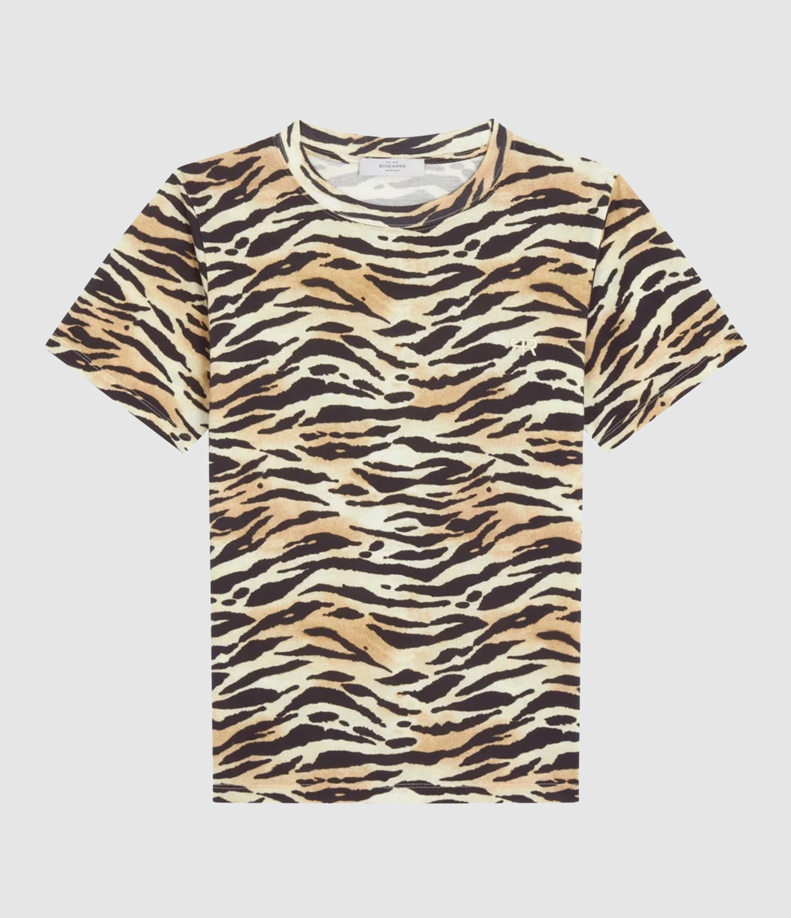 T-shirt en piqué de coton Roseanna. Ce t-shirt à coupe droite et manches courtes présente un col rond en bord-côte. Se distingue par son imprimé animalier et sa broderie double RR, signature discrète de la maison.
