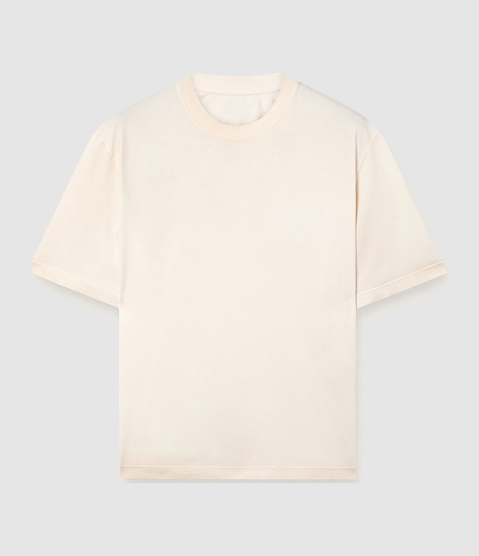 Tee-shirt en coton beige. Col rond, manches courtes. Inscriptions "STAR" en noir à l'arrière. Coupe droite.