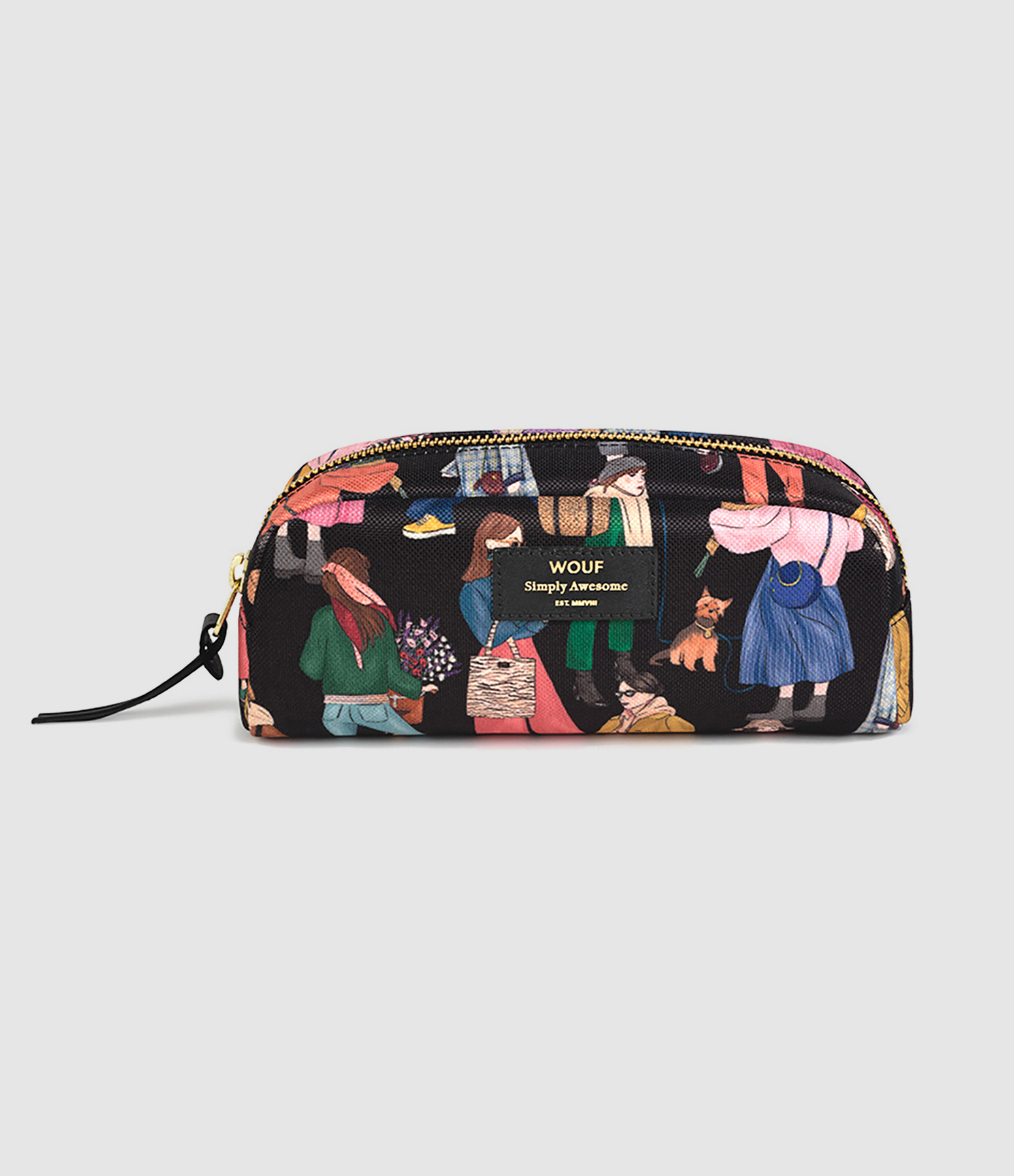 Petite trousse arrondie en toile recyclée, imprimé girly. Fermeture glissière YKK recyclée. Résistante à l'eau. Encres écologiques.