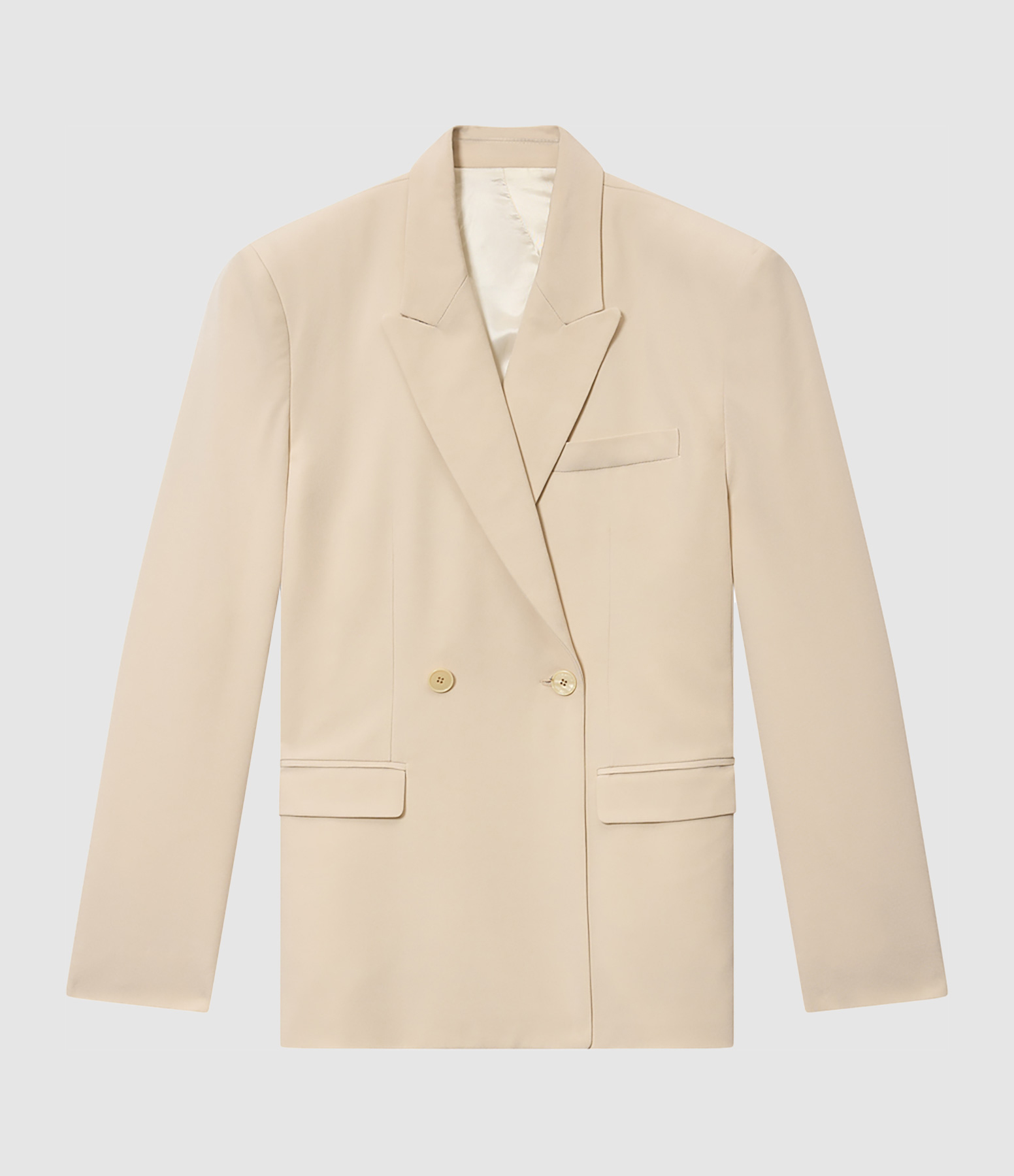 Veste tailleur en crêpe de soie Col tailleur italien Épaules structurées à épaulettes Manches longues Poignets droits boutonnés poche poitrine Poches à rabats