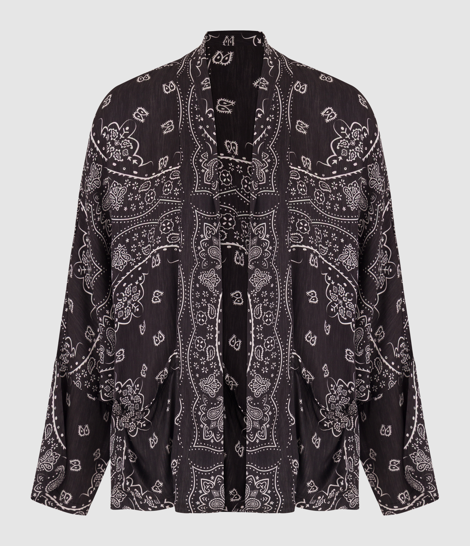 Veste fluide coupe loose au style bandana. Deux poches plaquées à l'avant.