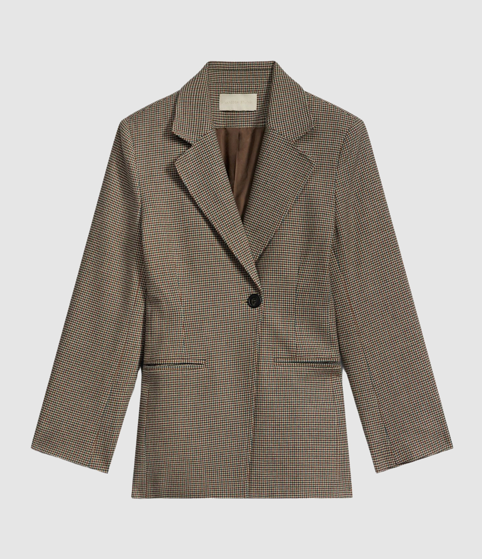 Veste structurée en laine mélangée à motif pied-de-poule.