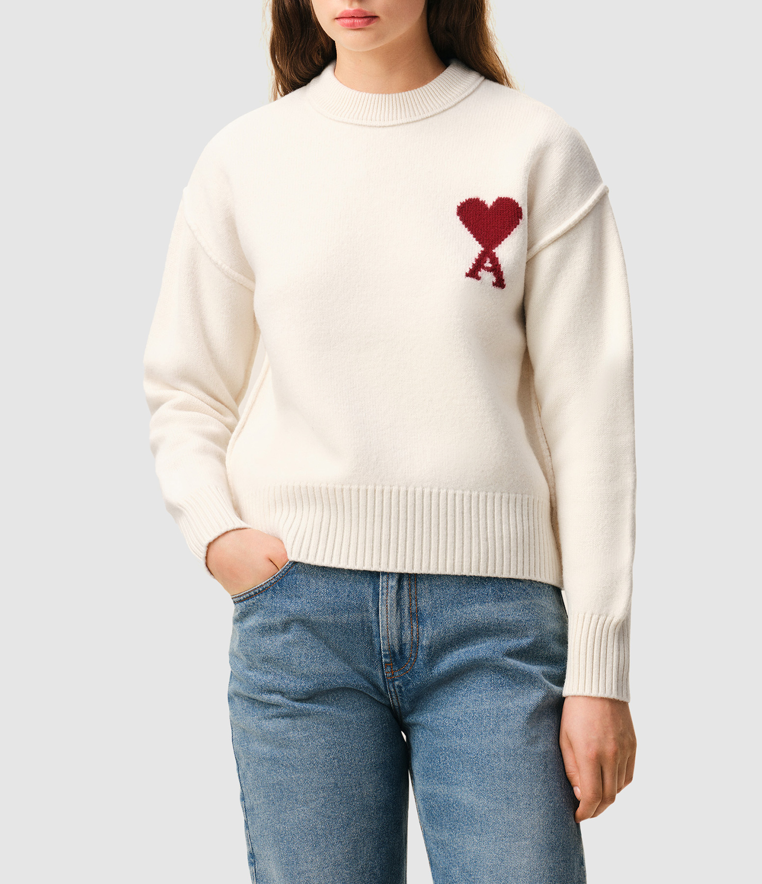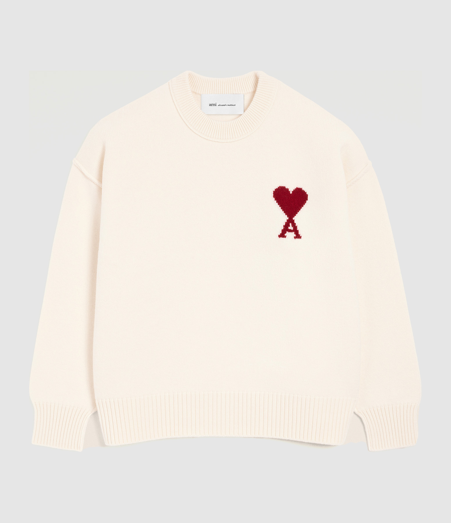 Pull With Contrasted Ami De Coeur Ecru Rouge