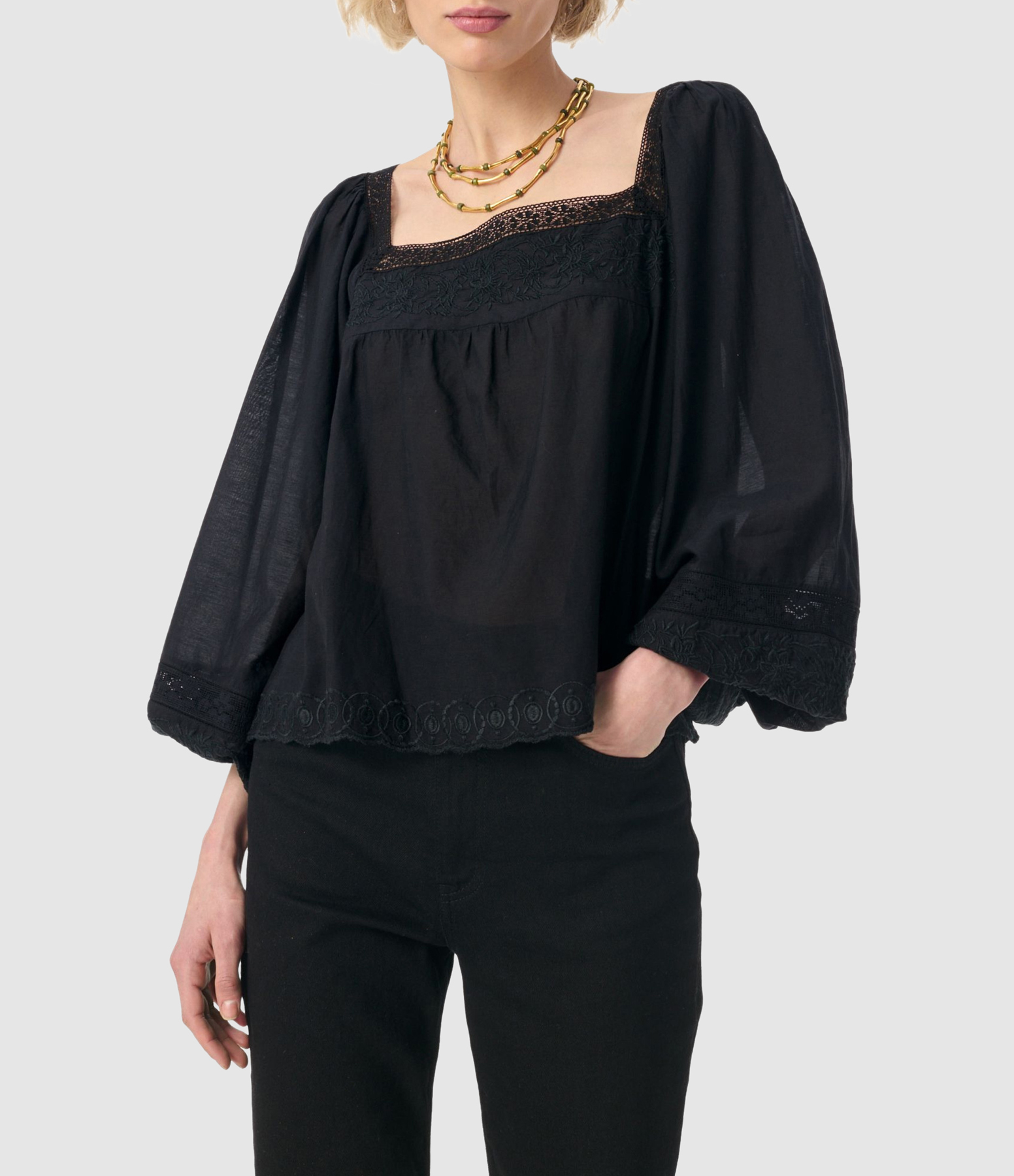 Découvrez notre collection de blouses féminines et élégantes : blouse léopard, blouse noire, blouse en dentelle, manches courtes ou bouffantes, signées Jeanne Vouland, Anine Bing et Isabel Marant.